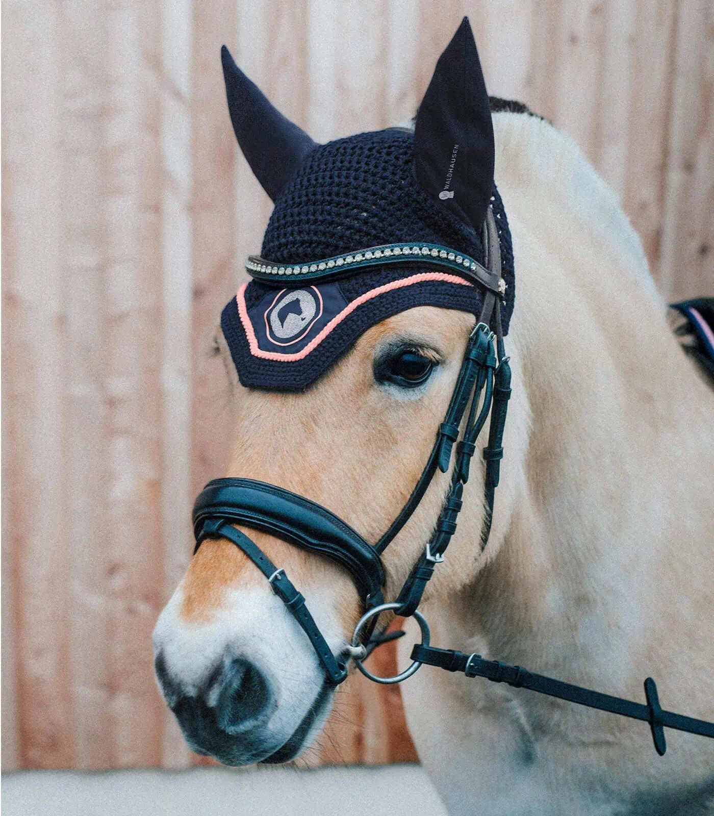 Optimum wearer comfort due to a soft elastic polyester weave. The forehead part is crocheted and is rounded off with a pink decorative cord as well as the glittery Lucky Heart logo. With particularly air-permeable mesh ears.