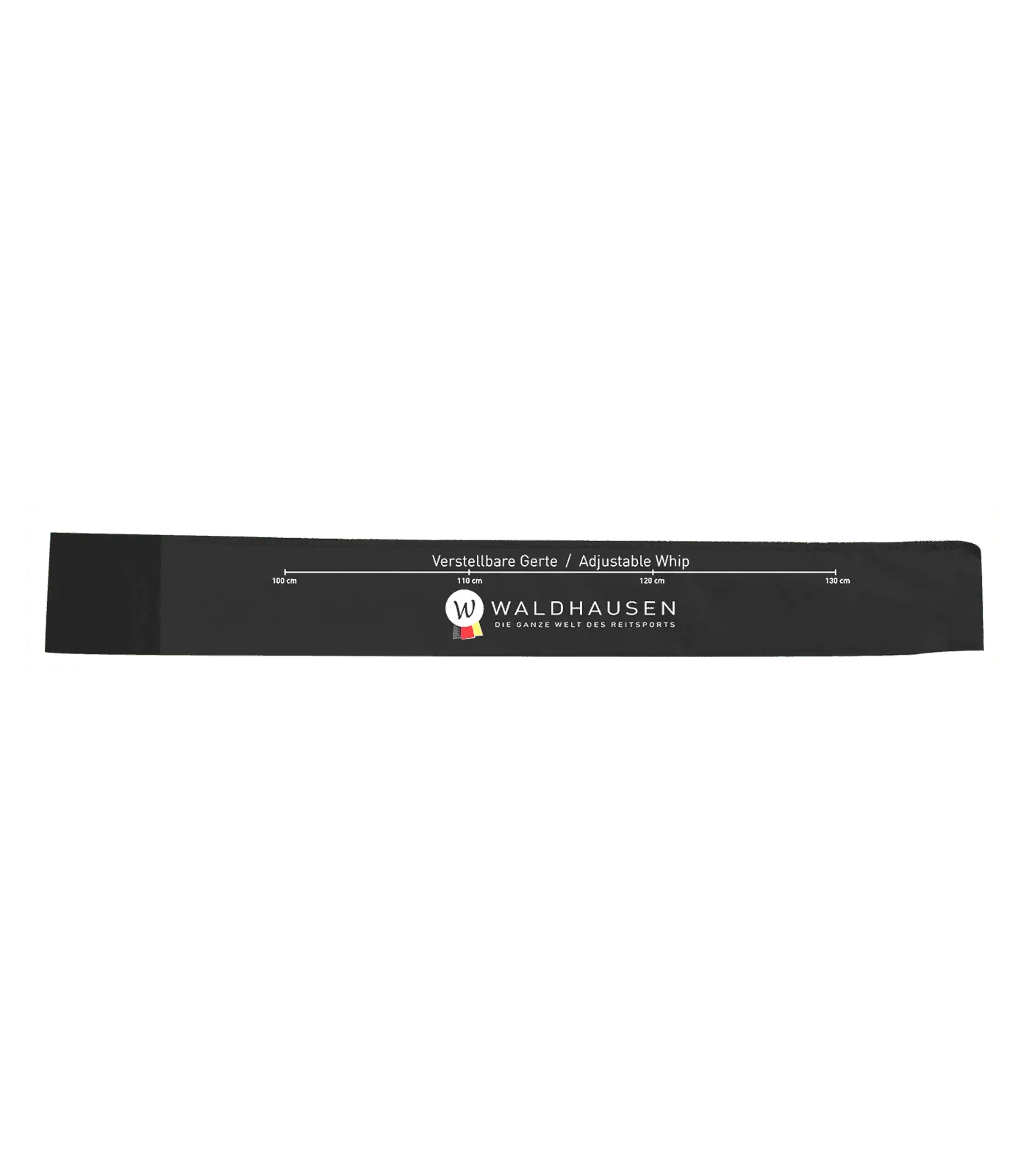 Particularly light dressage whip with seamlessly adjustable shaft, from 100 - 130 cm. Manufactured from carbon, and fibreglass, fibres.