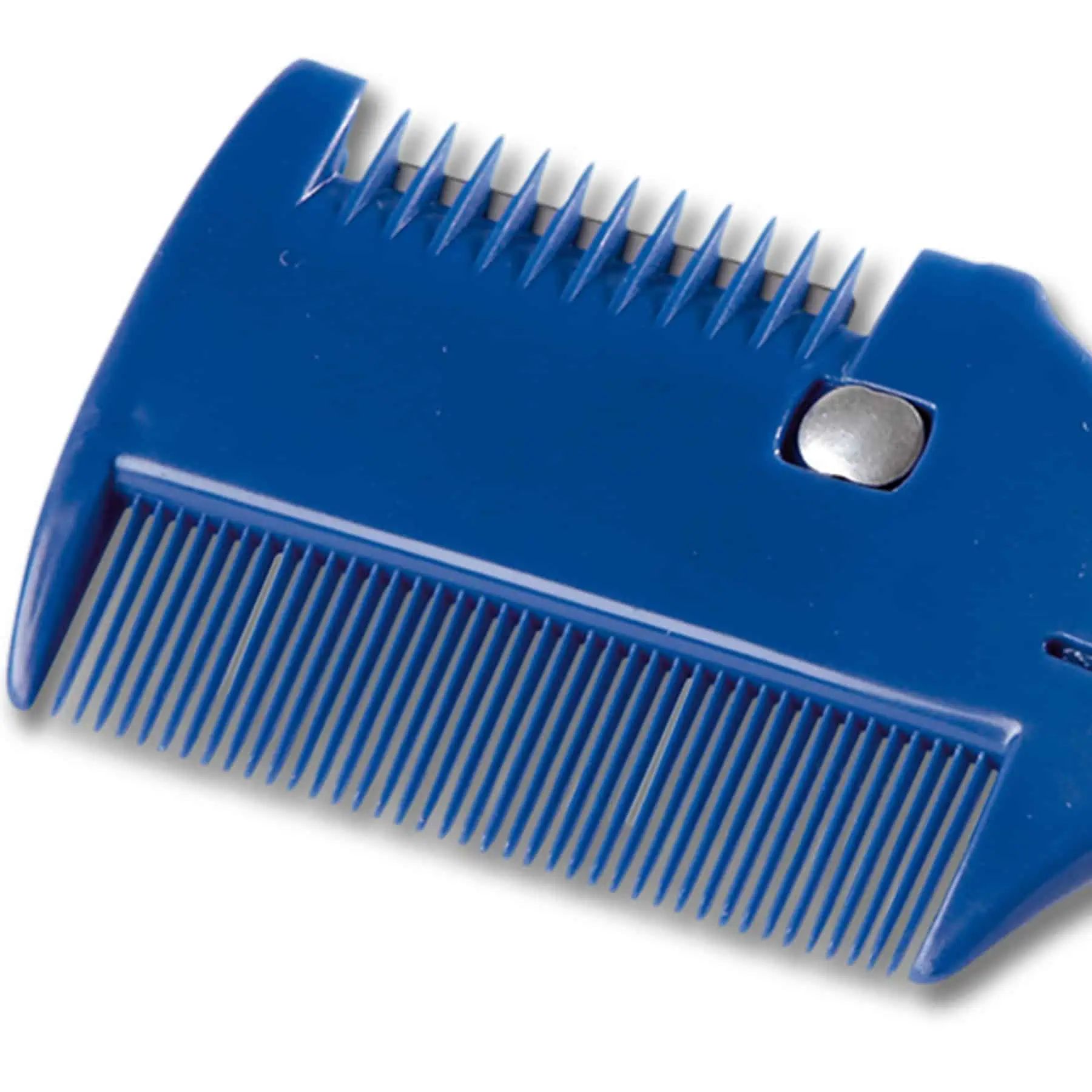 For combing as well as thinning of the mane, without painful pulling and tearing. Exchangeable blade.