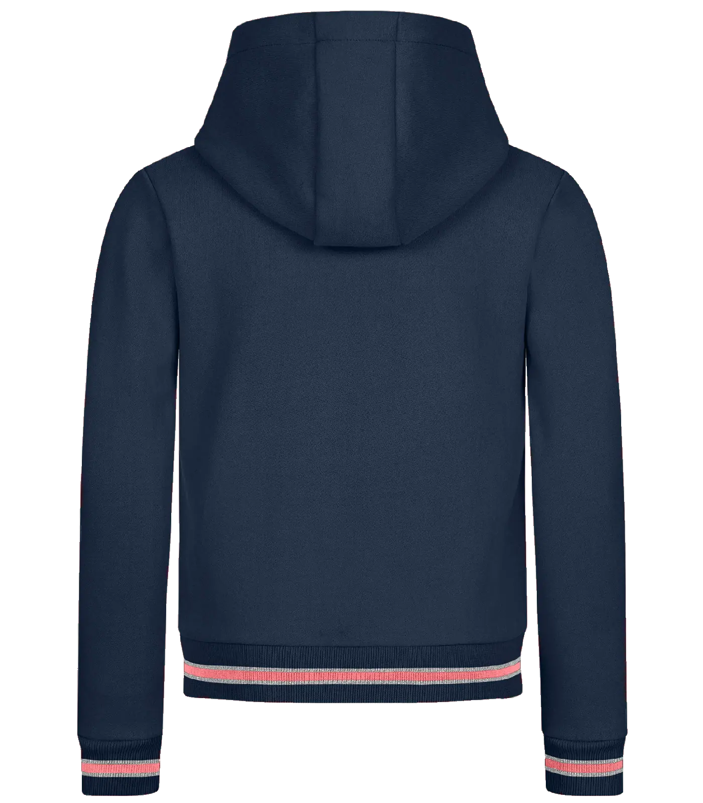 - Ribbed cuffs with glitter stripes: sleeves and hem