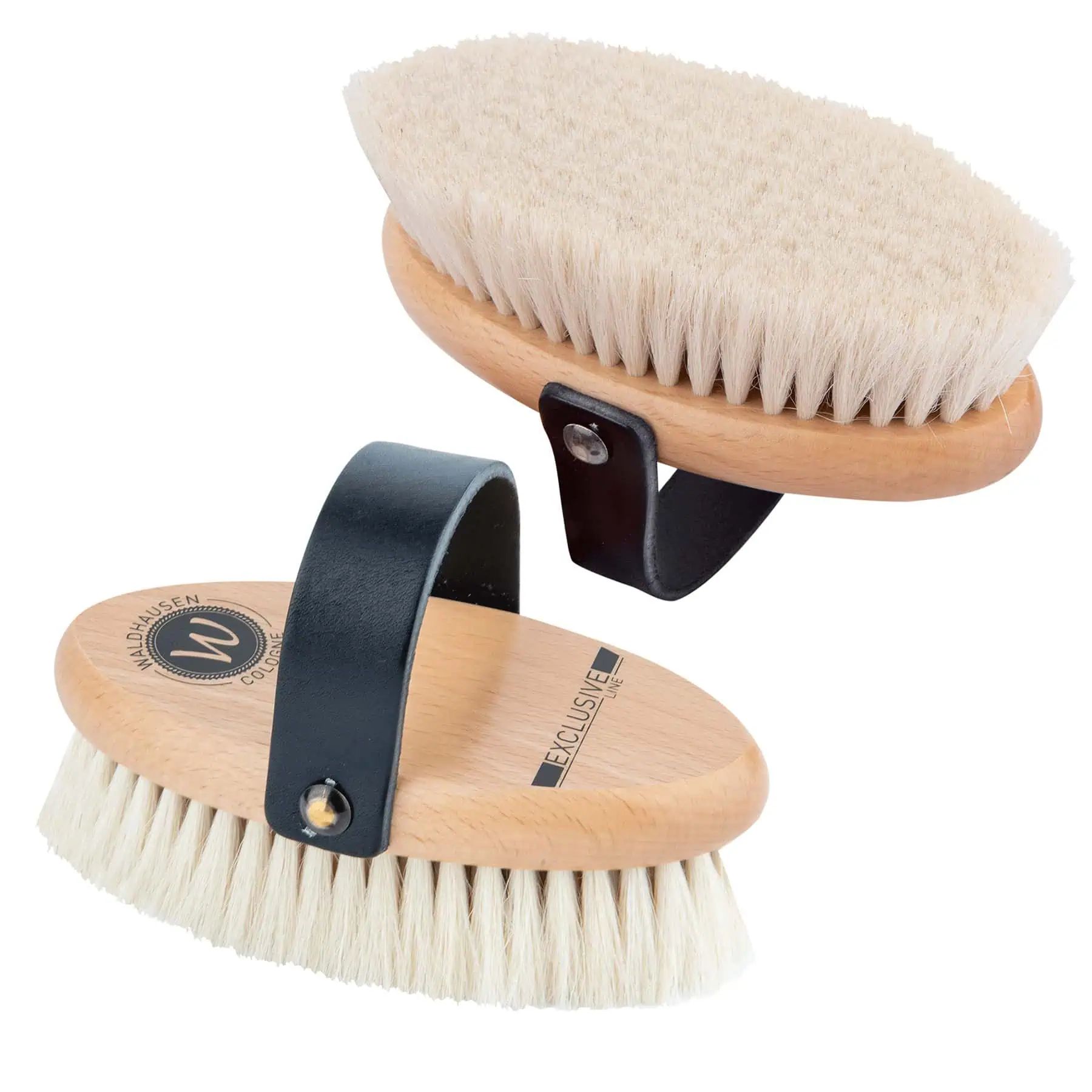 Using this handy face brush with 100% dense, extra soft goat hair, you can treat your horse to a particularly pleasant grooming session, which it will enjoy in the head area especially. It is perfect for finishing off and gives the coat a wonderful shine. The particularly soft and smooth goat hair does not leave any specks of dust on the horse"s coat, and is better at getting the coat to shine than lambskin. Natural materials do not cause static.