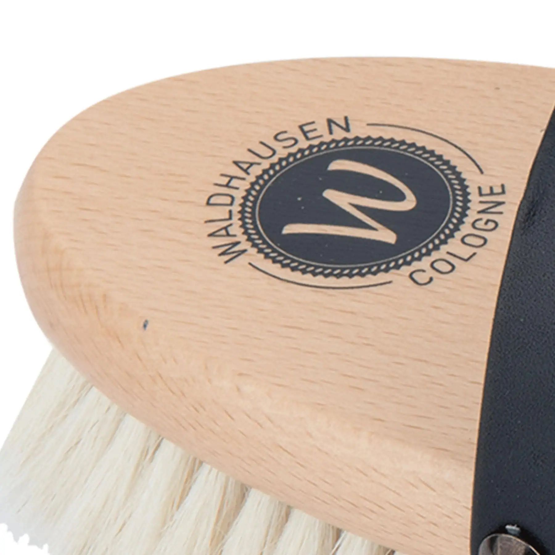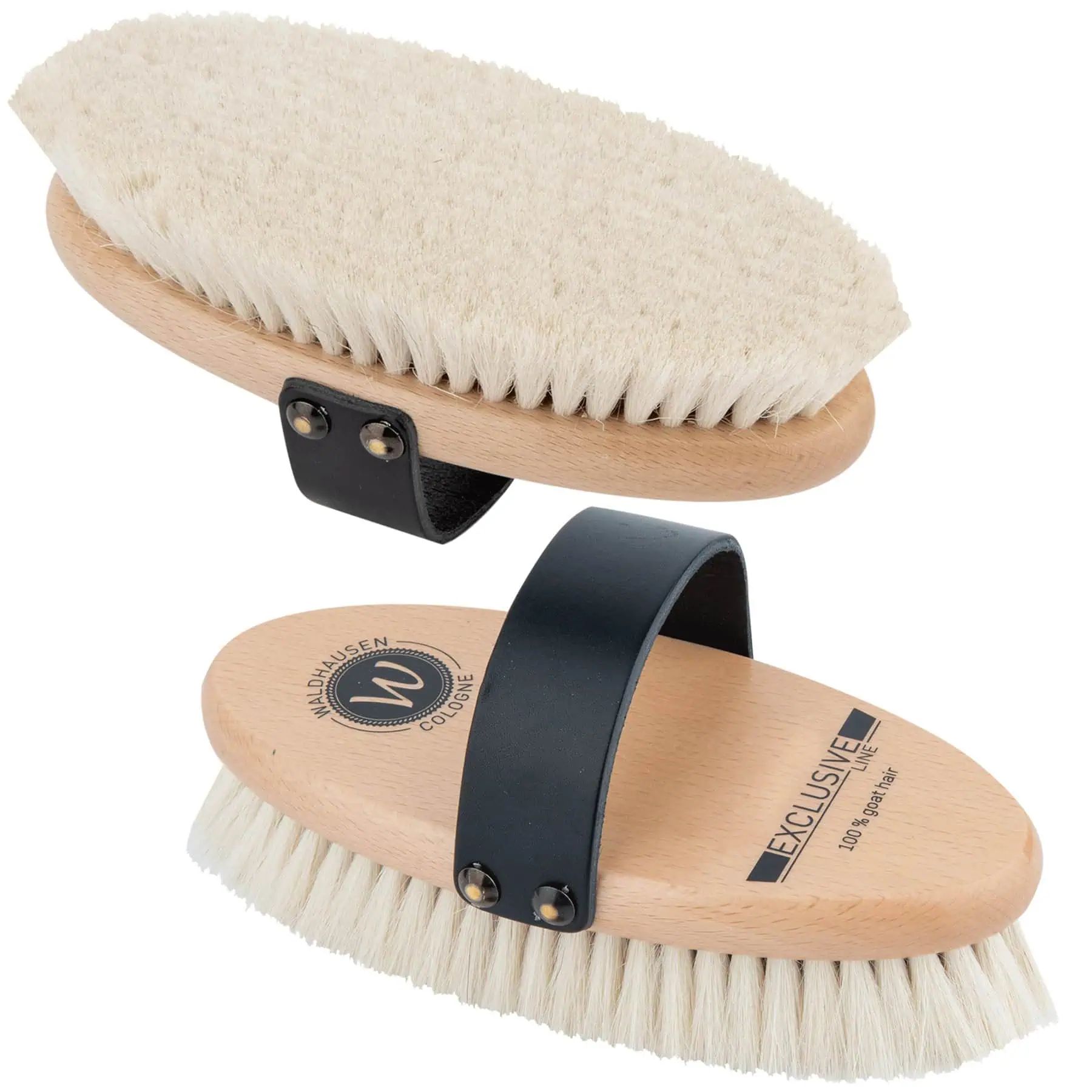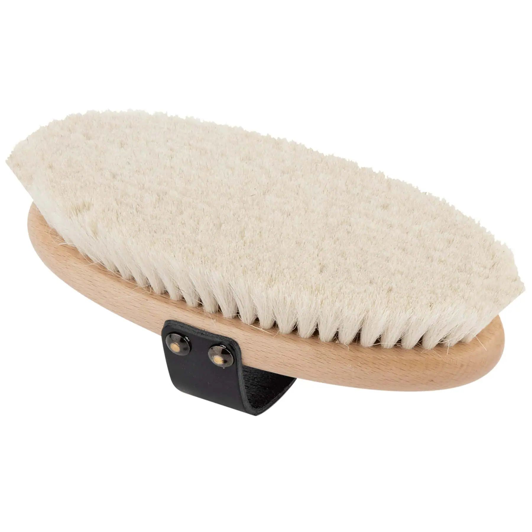 This goat hair body brush in optimum quality is perfect for finishing off and leaves the coat gleaming. The particular soft and smooth goat hair leaves no dust particles behind on the horse"s coat, and is better at getting the coat to shine than lambskin. This goat hair also ensures very special TLC time. Natural materials do not cause static.