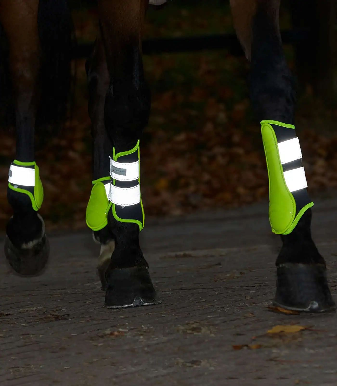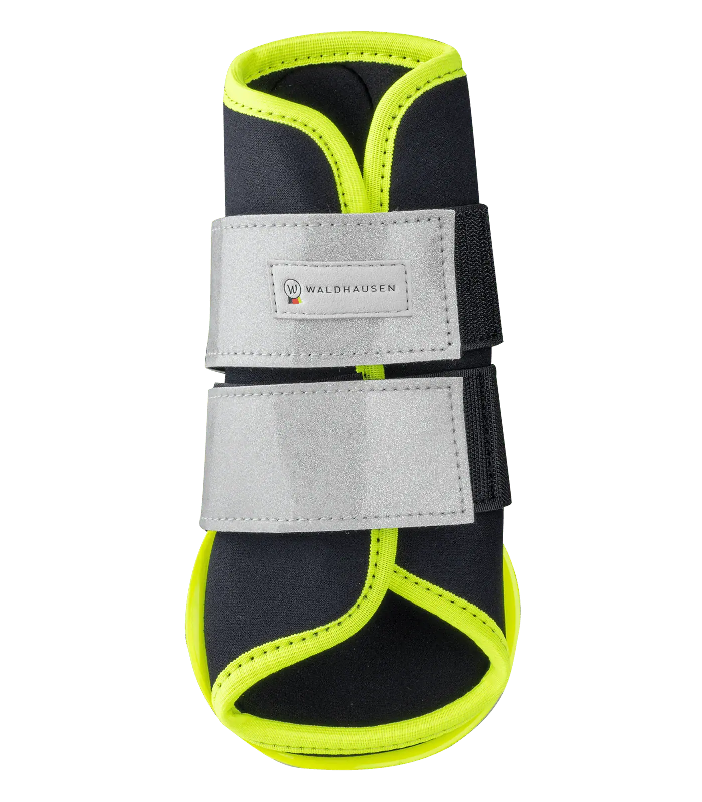 The sturdy moulded hard shell on the inside provides protection from knocks or brushing. With reflective touch tape fastening for good visibility in the dark. High quality and easycare soft material inside to securely enclose the horse"s leg and thus ensure all-round protection. Extra sturdy touch tape fasteners hold the boots securely on the leg. Pair.