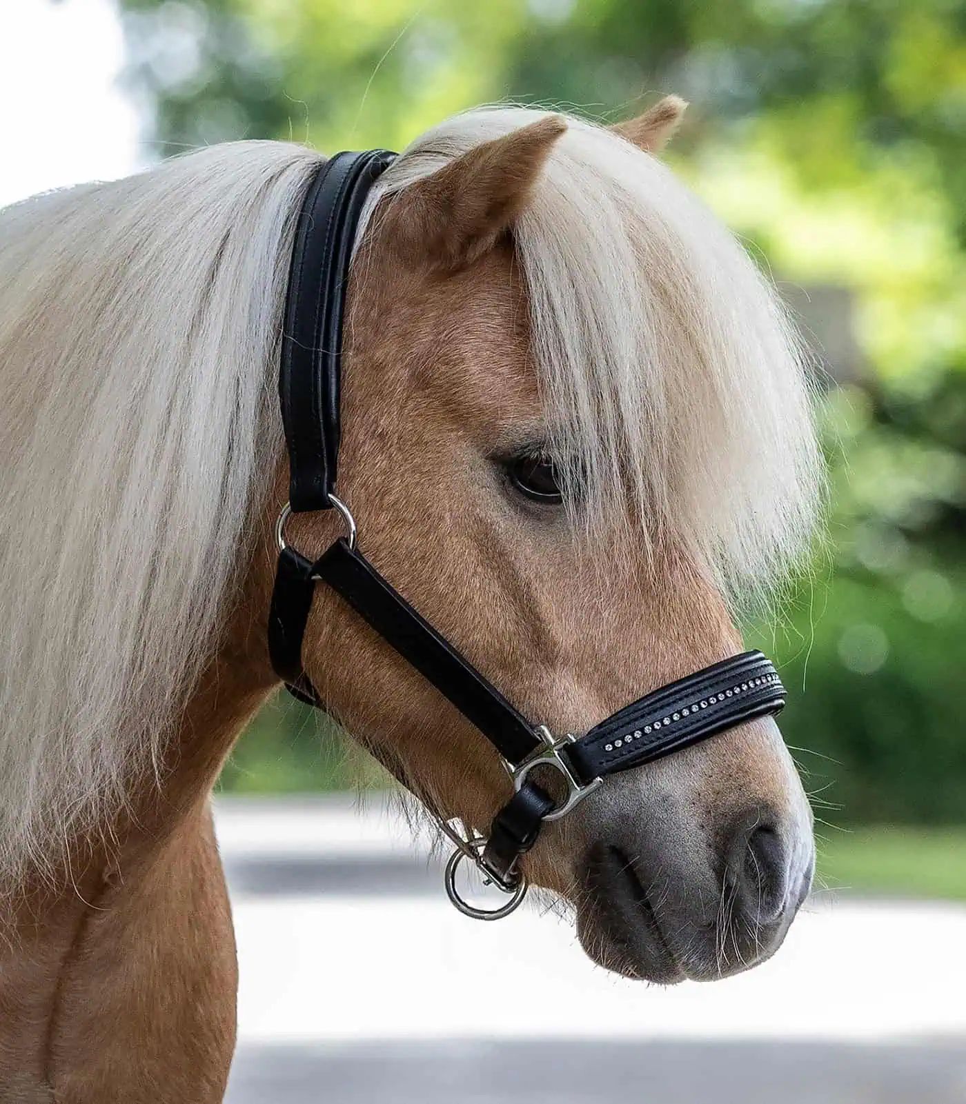 Hard wearing leather halter featuring a lined noseband and poll strap. Multi adjustable on neck and nose. Silver coloured fittings (black), brass coloured fittings (brown).