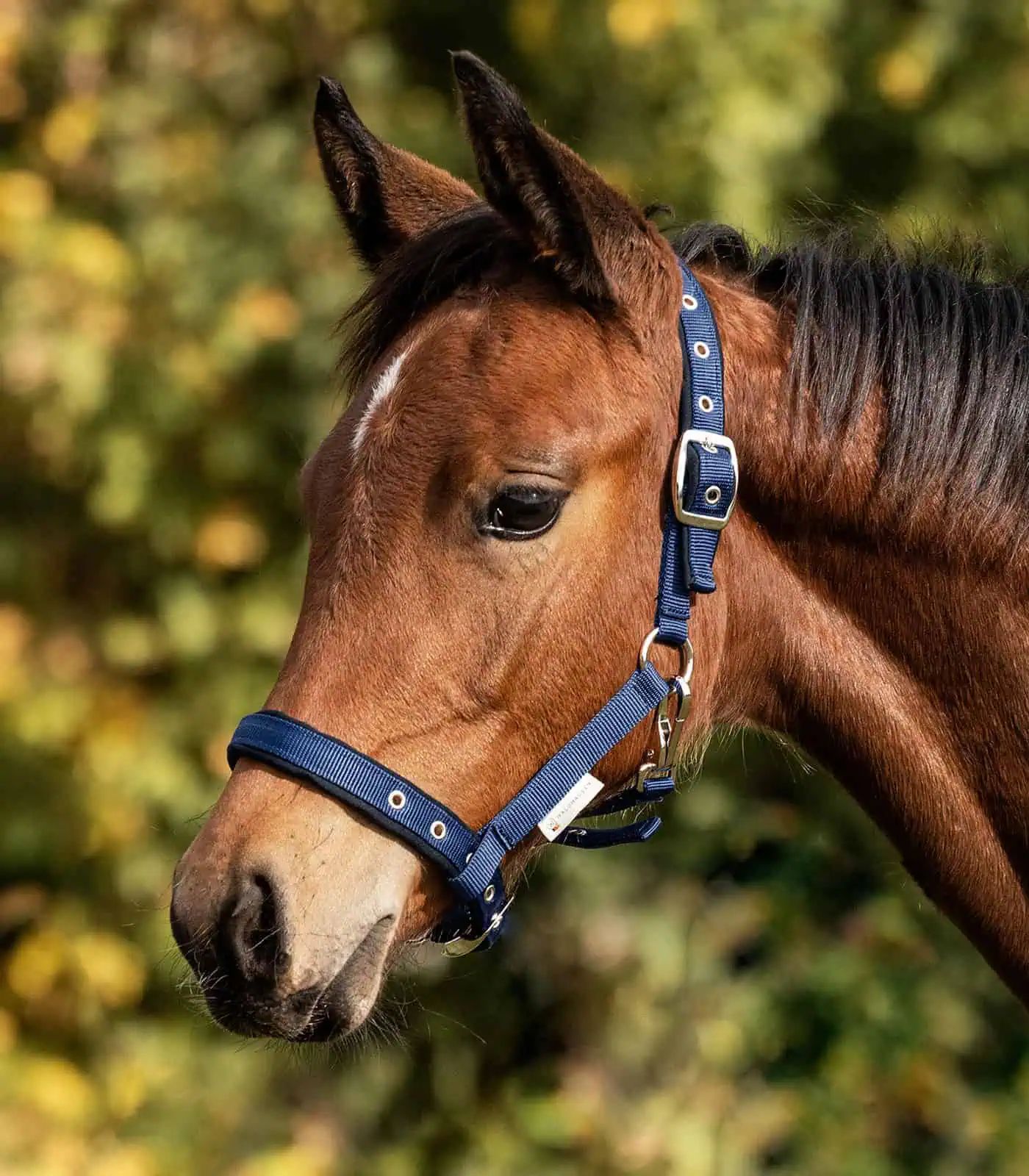 Slim cut foal halter made of high-quality synthetic material. Features silver coloured nickel-plated fittings. Adjustable at head piece, noseband and throat lash.