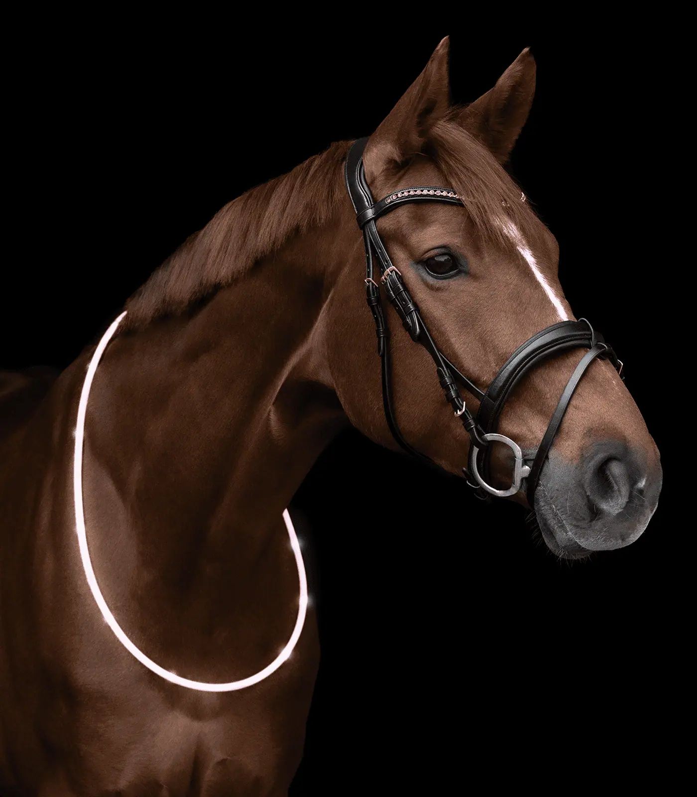 With the neck strap light you can travel safely with your horse in the dark and fog. Thanks to an illumination duration of up to 2 hours, your horse remains well visible at all times even on longer hacks. So that the neck strap fits your four-legged friend perfectly, you can quite simply cut the silicone to size. For the illumination effect you can choose between two flashing modes and continuous light. Do please note when doing so that the battery performance varies with mode chosen.