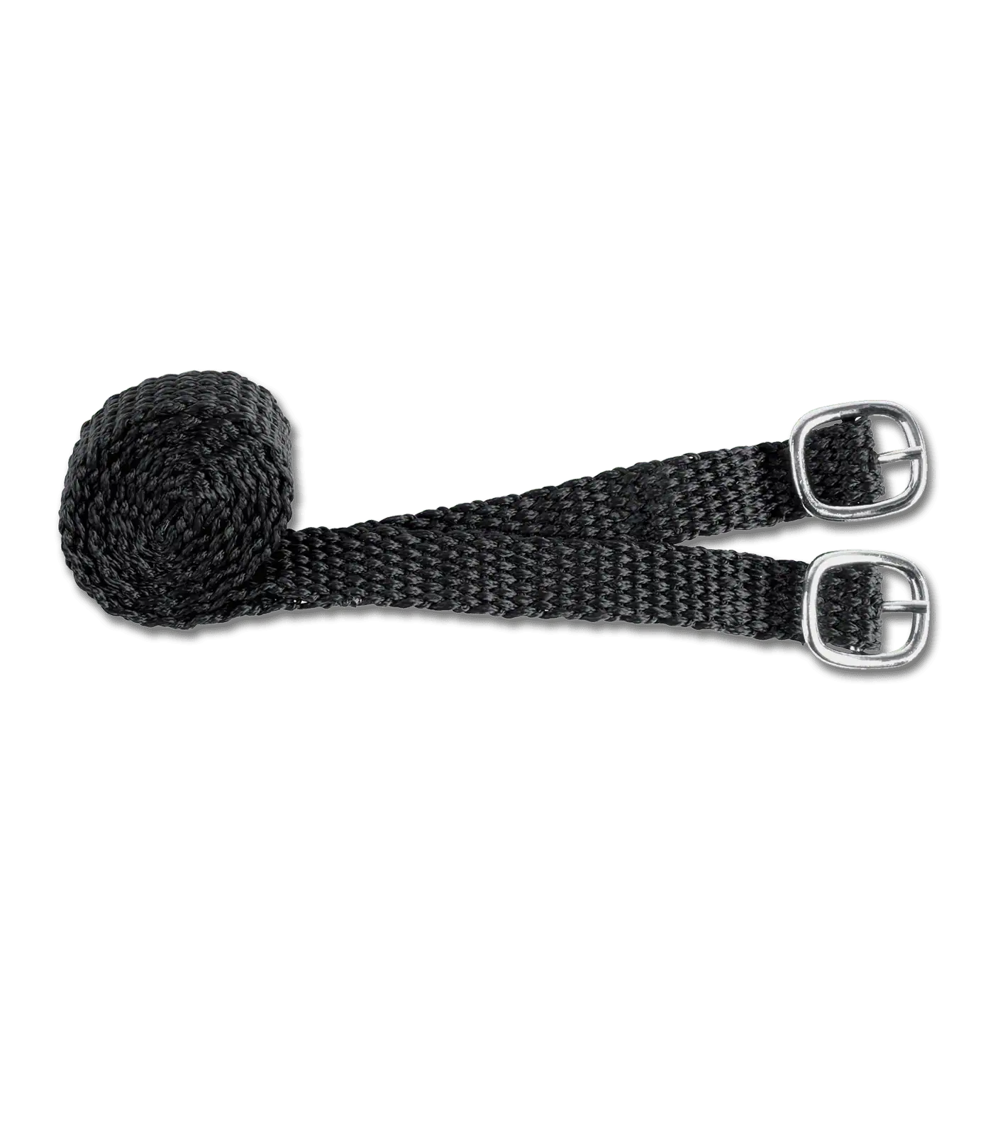 Spurs with fixed spur guard and nylon spur straps, rustfree.The fixed spur guard prevents the spur from slipping and protects riding boots from damage, pair.