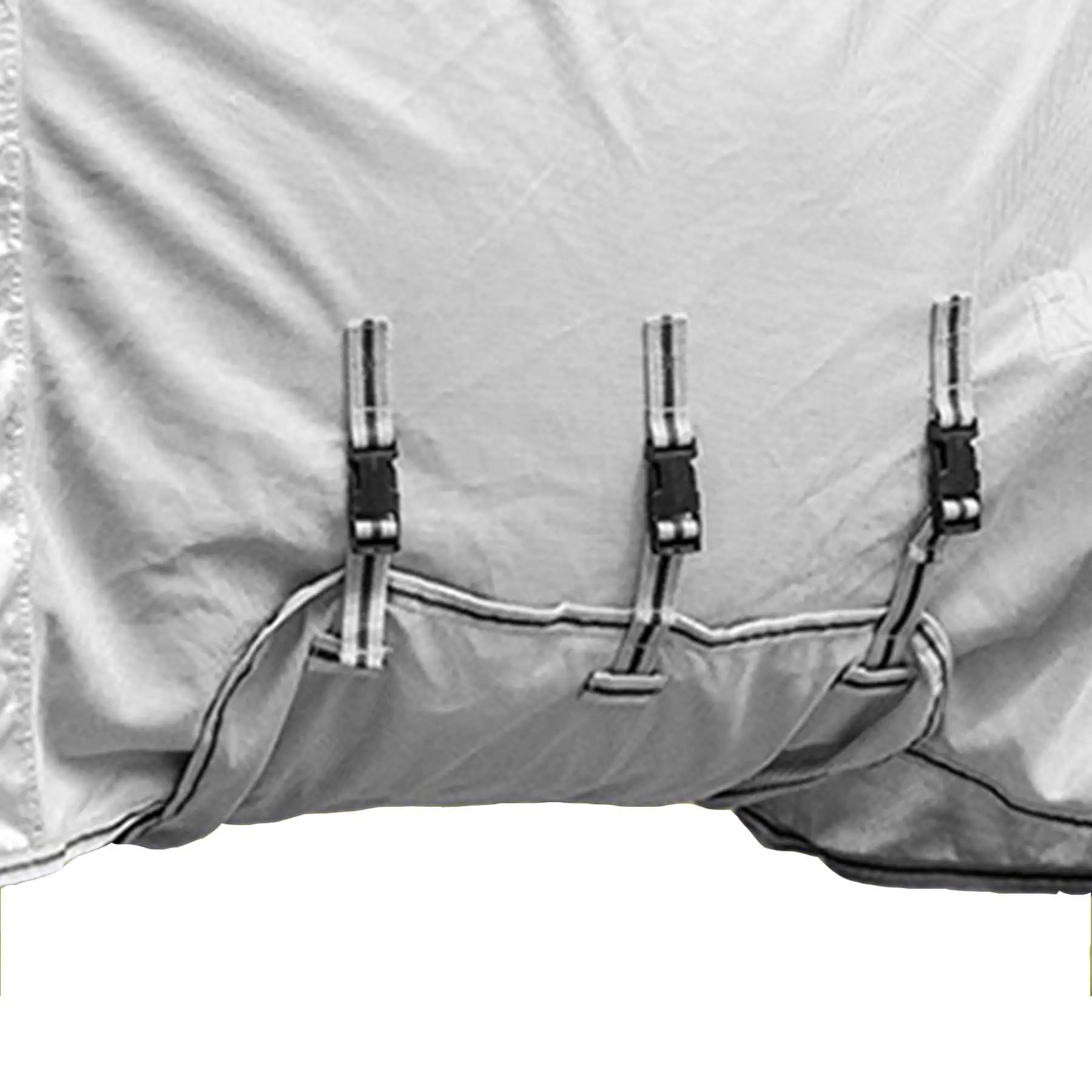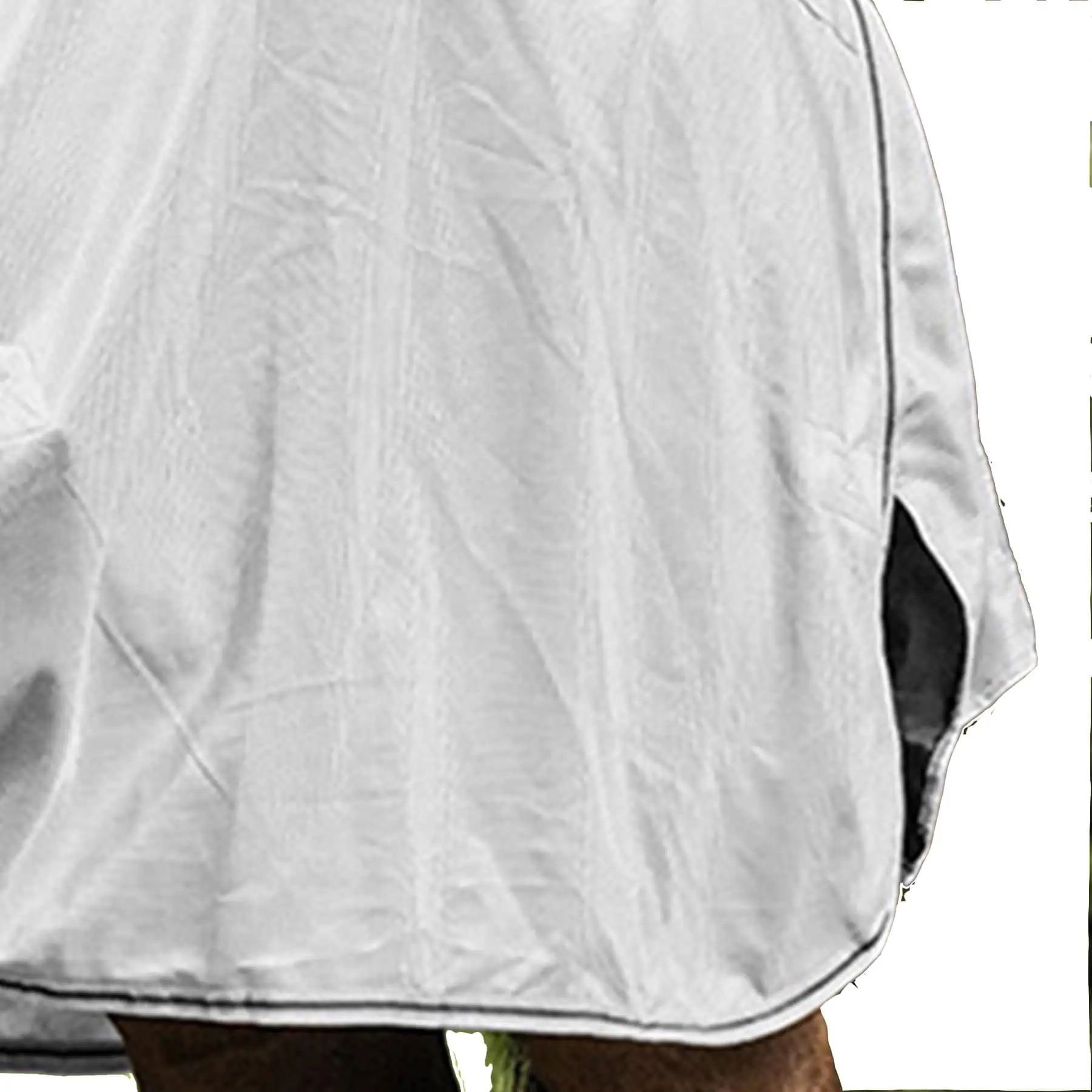 Der Sitz des schwarzen elastischen Bereichs wird oft auf anderen Plattformen bemängelt. Aber, wenn das Pferd den Kopf zum Grasen unten hat ... sitzt der elastische Bereich genau richtig! Das Material ist angenehm glatt und die Nähte sind gut verarbeitet. Die Decke ist stabil aber trotzdem leicht. Die Decke ist eher für nicht so dicke Pferde geeignet. Für meinen dicken Friesen sind die Bauchriemen ca. 20 cm zu kurz. Ich werde sie selbst verlängern.