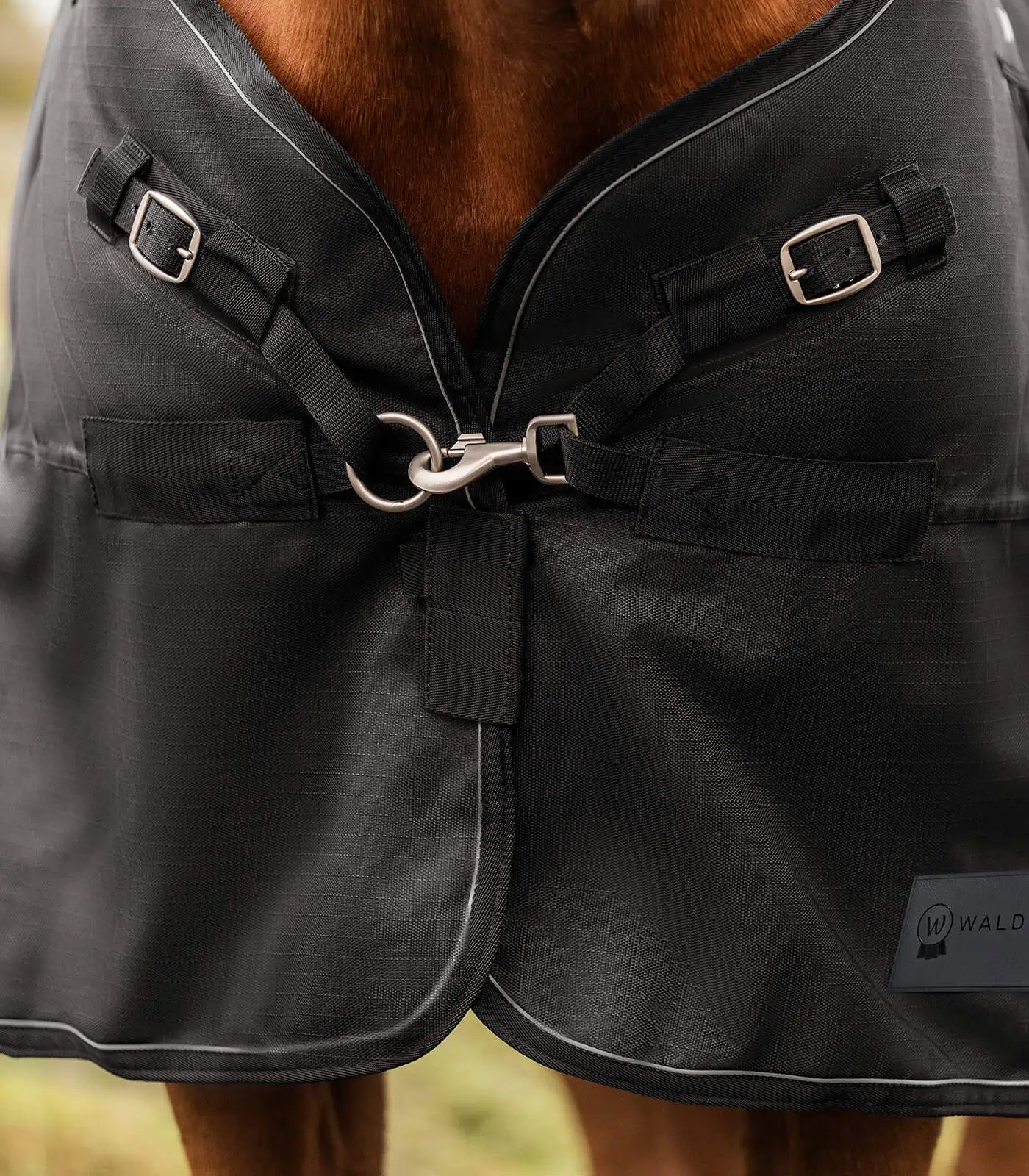 The Waldhausen Scandic turnout rug is the ultimate combination of comfort, functionality, high-quality materials and innovative features. The antibacterial inner lining ensures maximum comfort. The new V-front fastening and the large kick pleat ensure an ideal fit and optimal freedom of movement. The reflective piping increases the visibility and safety of your horse in low light conditions. The 1200 denier outer fabric guarantees a robust and durable rug that can withstand the challenges of outdoor use.