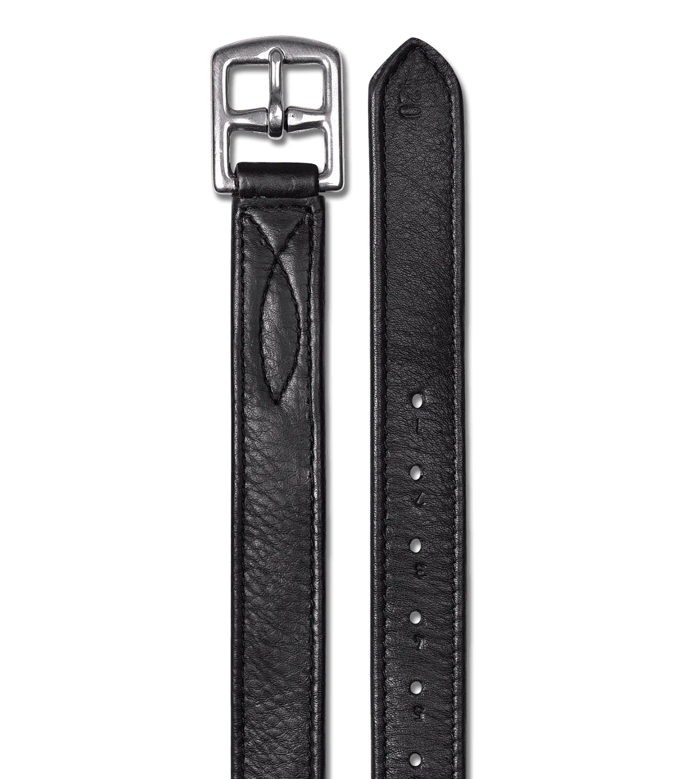 Hard-wearing thanks to the dimensionally stable nylon core coated with soft, high quality leather. With stainless steel buckles. Pair.