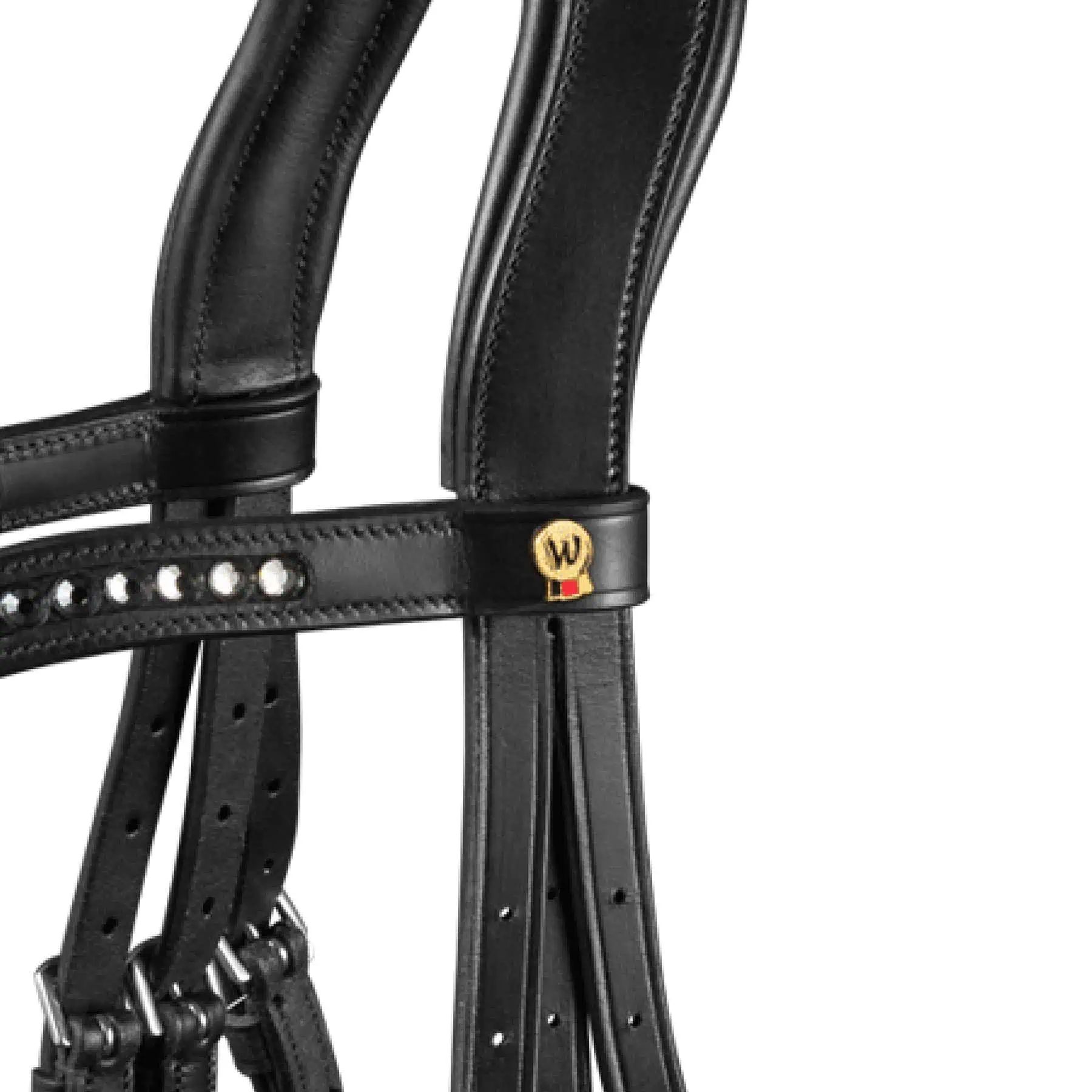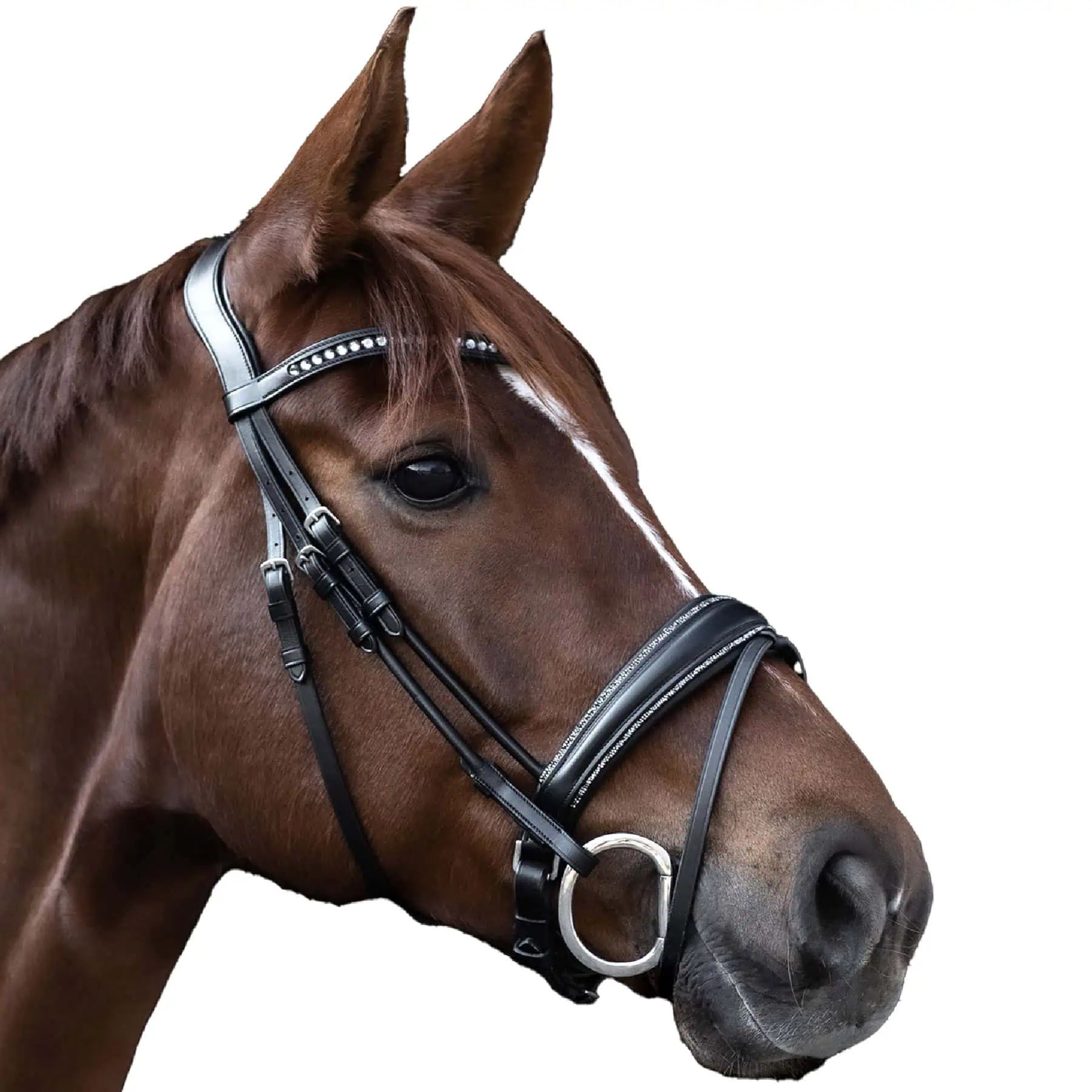 - Decorative piping with black/silver crystals on noseband