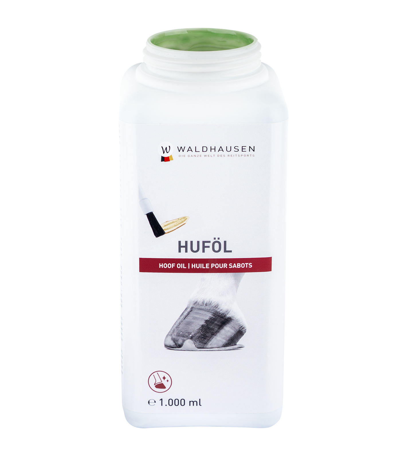 For the care of dry and brittle hoofs. Promotes growth and the elasticity of the horn tissue. Includes brush.