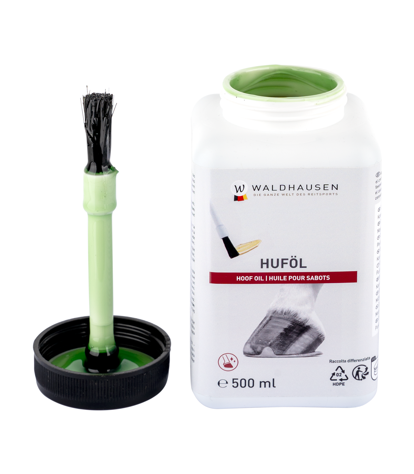 Nourishes the hoof and is proven to support hoof growth and elasticity. Quality oils prevent the hoof from drying out or becoming soft. In a practical bottle with brush.
