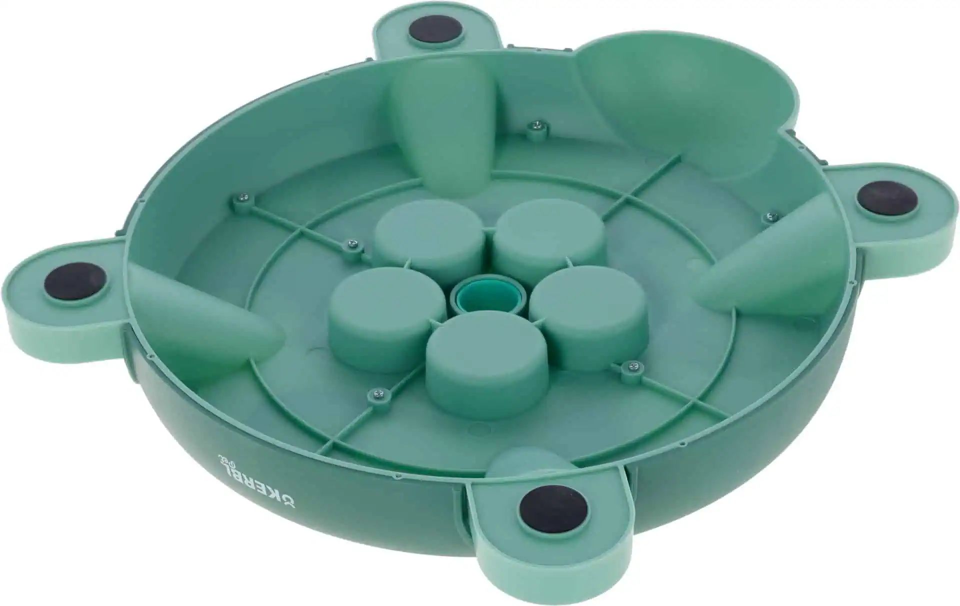 Made from durable and antibacterial polypropylene plastic, the toy is not only long-lasting but also safe for your pet. It is easy to clean thanks to its smooth surfaces and removable caps and spinning plate. Additionally, rubber nubs on the bottom ensure a non-slip stand, keeping the toy in place during use. Measuring 25 x 28 x 5 cm and featuring an attractive turquoise color, the Turtle is a visually appealing addition to any setting.