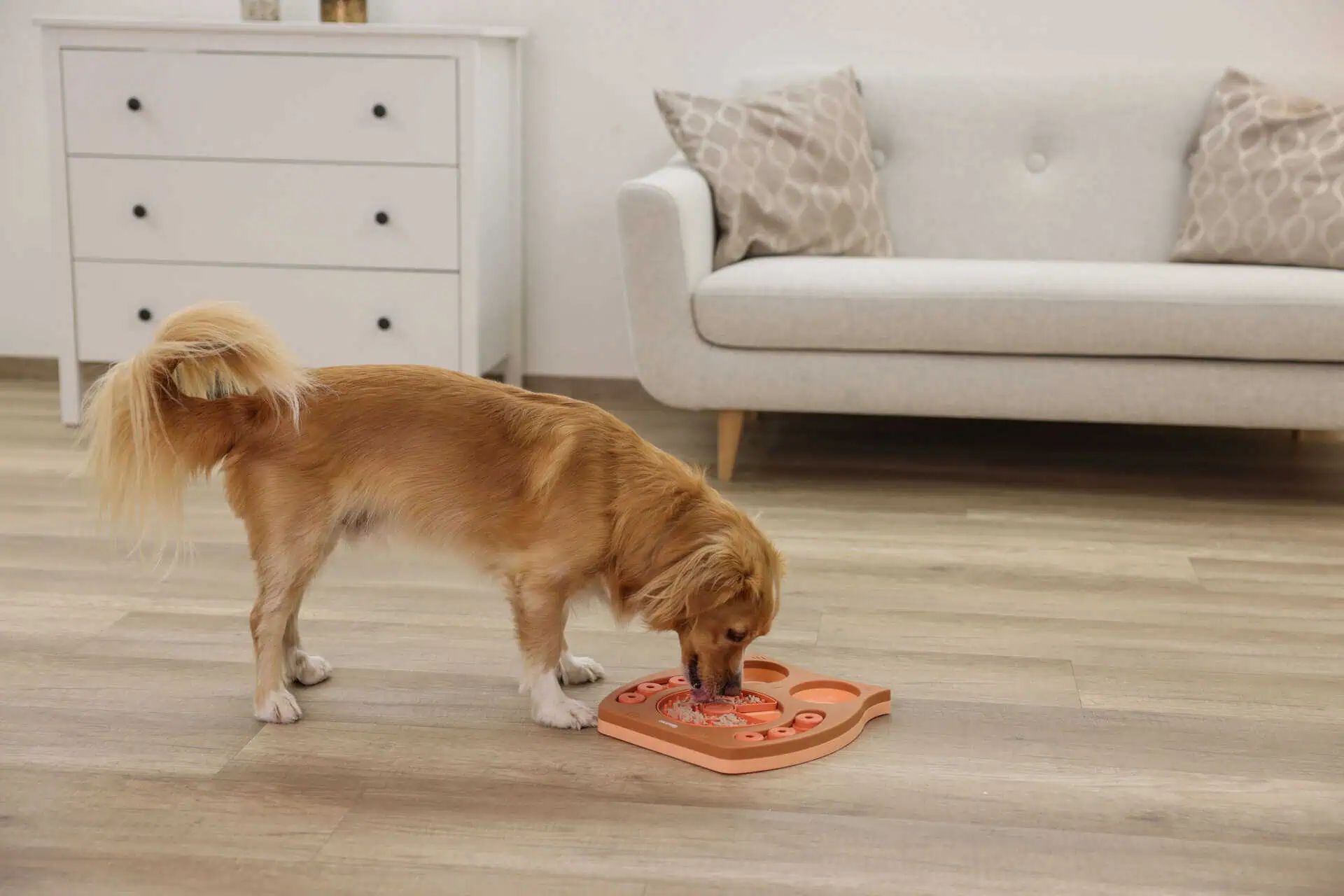 The toy is ideal for small and medium-sized dogs and cats that need both mental and physical stimulation.