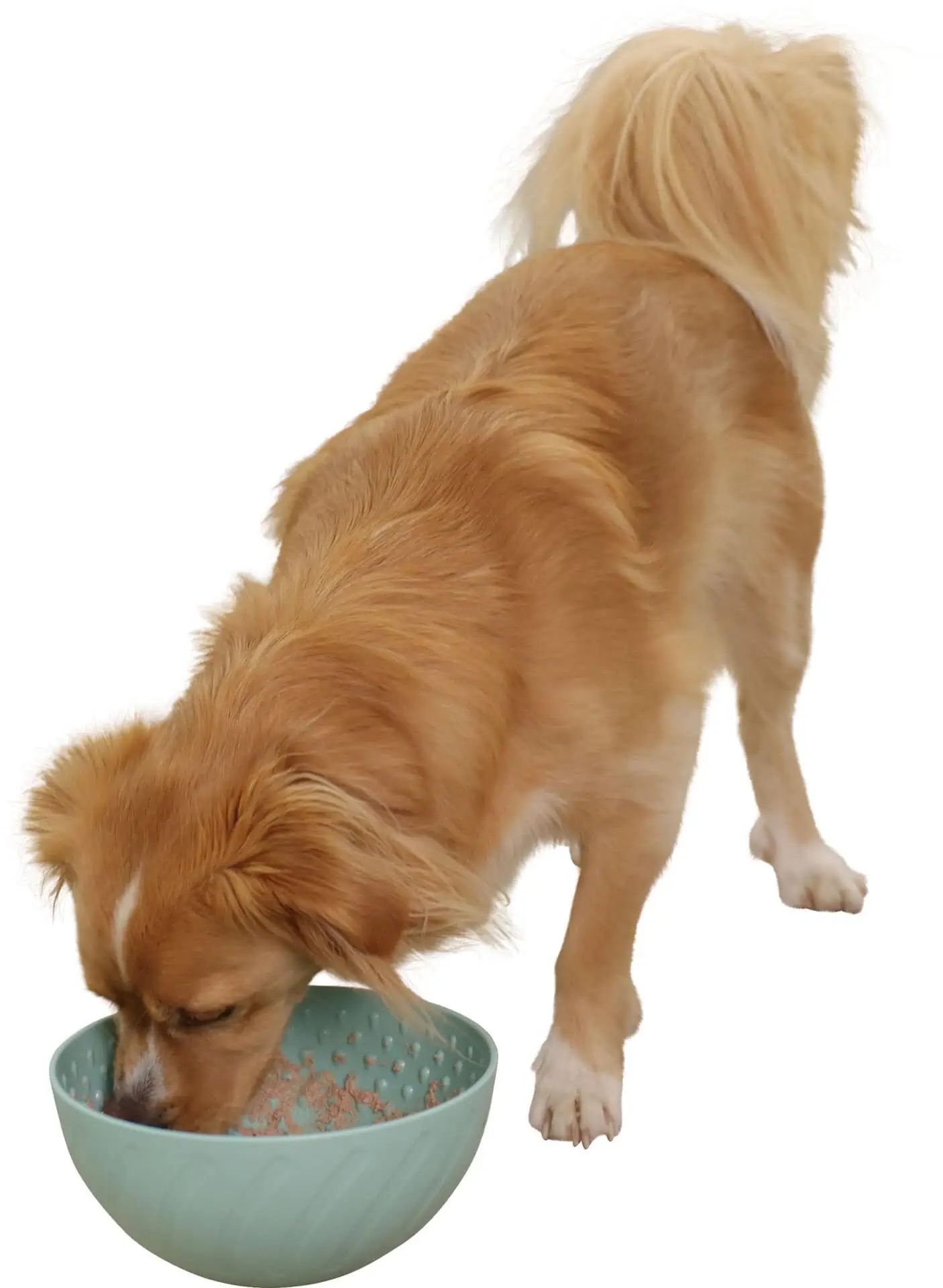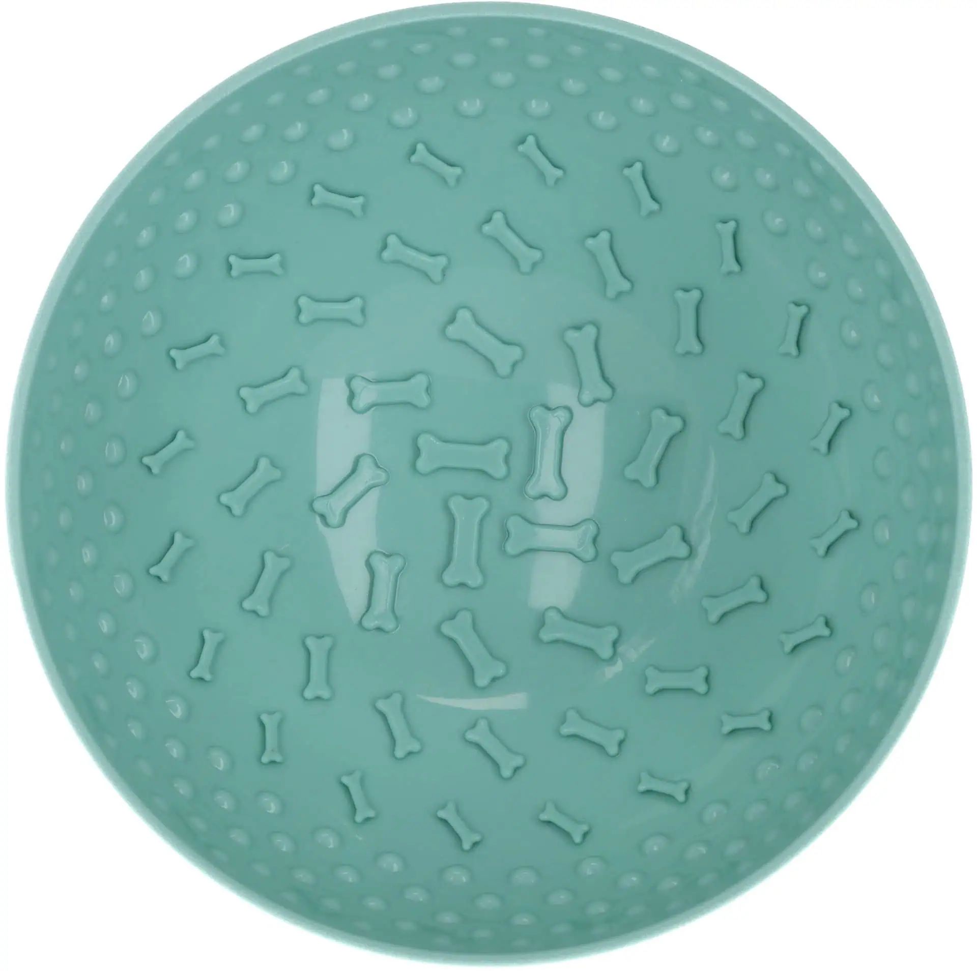 The Lick Bowl is turquoise, dishwasher safe, and has a diameter of 20.5 cm and a height of 11 cm. Made from high-quality materials, it is safe and durable for everyday use. Ideal for dogs and cats that need a playful yet calming feeding method.