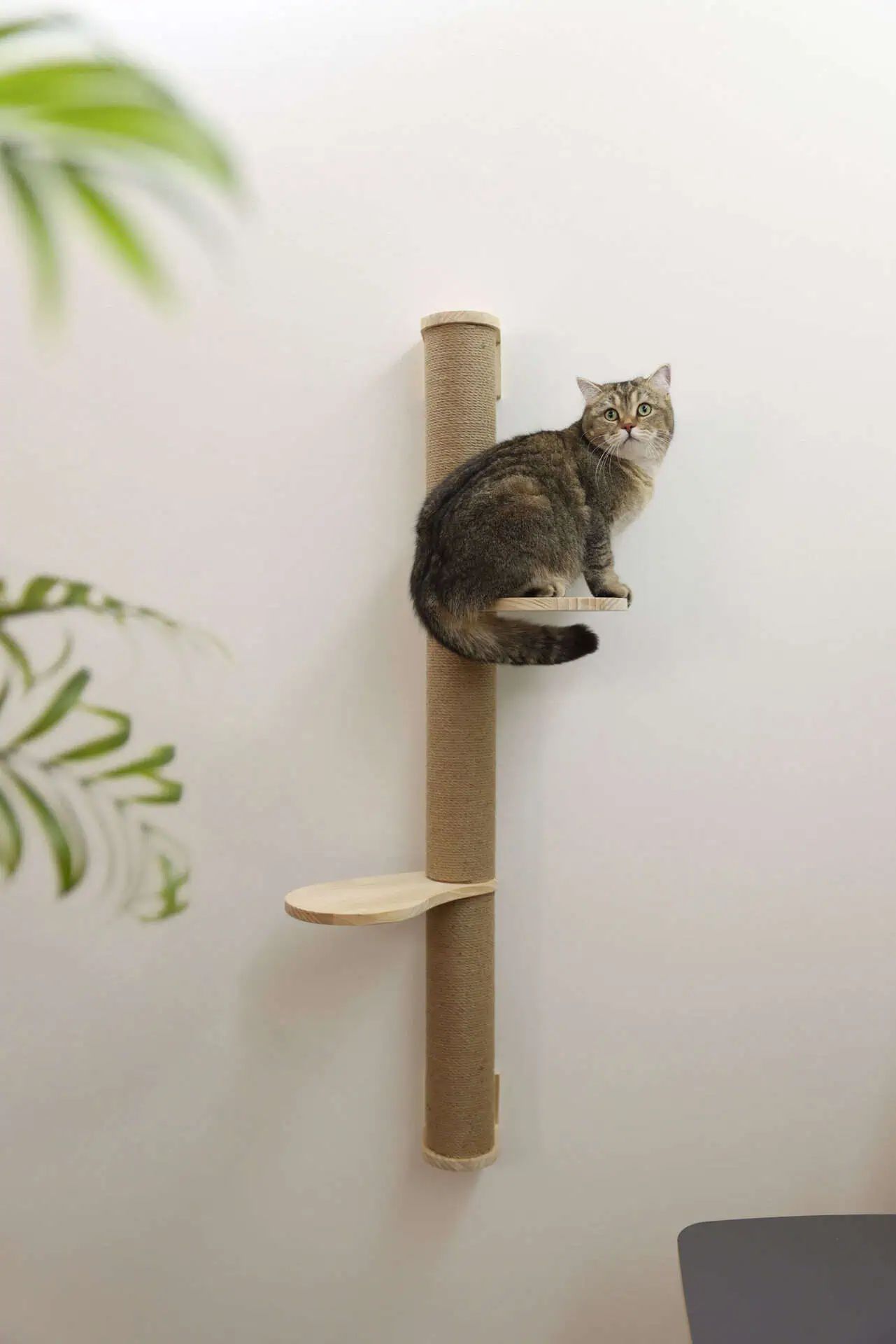 The Scratching Post Timber is the perfect solution for cats that love to climb, play, and sharpen their claws. This multifunctional product not only provides your cat with the opportunity to romp around but also offers a cozy spot to rest and keep watch. Equipped with two platforms, this climbing post for vertical wall mounting is also suitable for two cats and can be ideally integrated into existing cat climbing walls or used as an aid to reach higher levels.