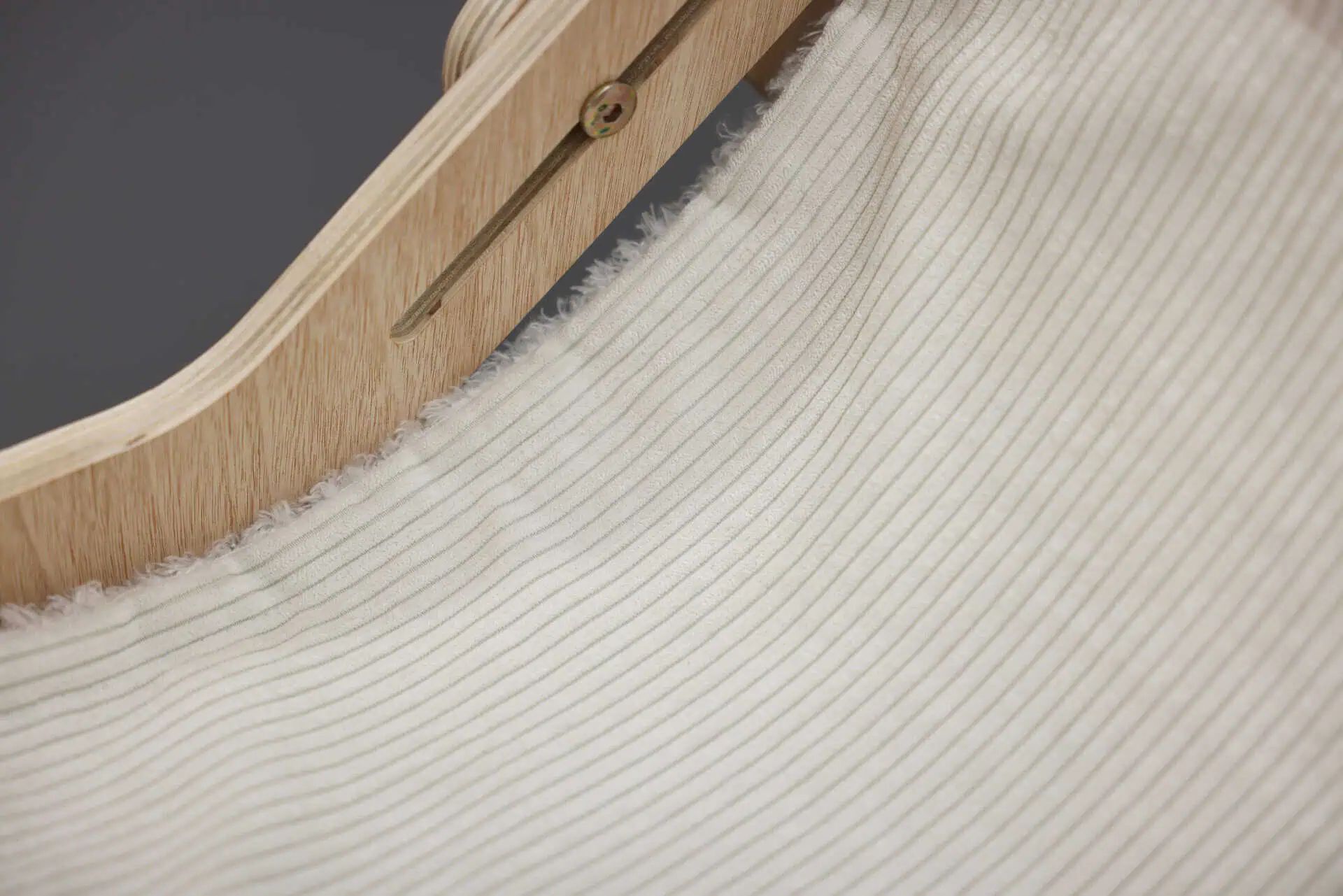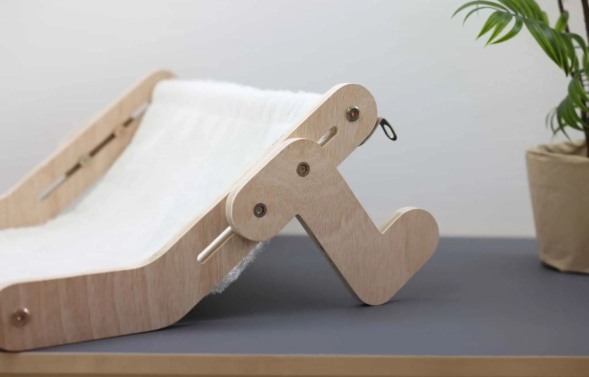 The Hammock Nap offers perfect functionality and comfort for relaxed hours at home. The solid wood frame guarantees stability and sturdiness, while the plush, reversible lying surface made of 100% polyester ensures maximum comfort. This hammock can be easily attached to beds, dressers, cabinets, and drawers. An adjustable support leg allows for individual customization to the respective piece of furniture without the need for drilling.