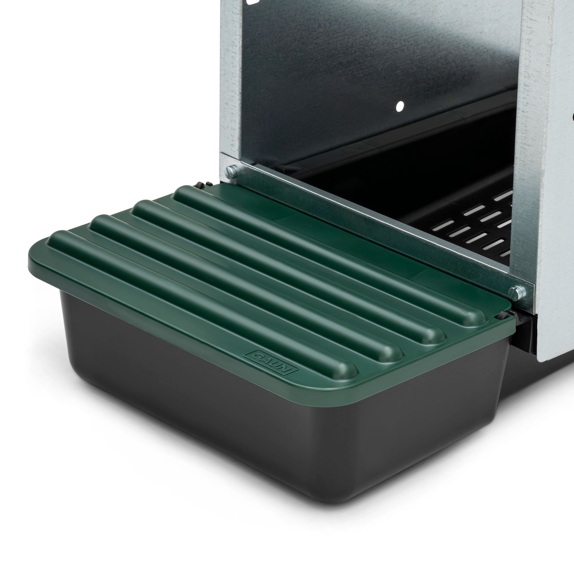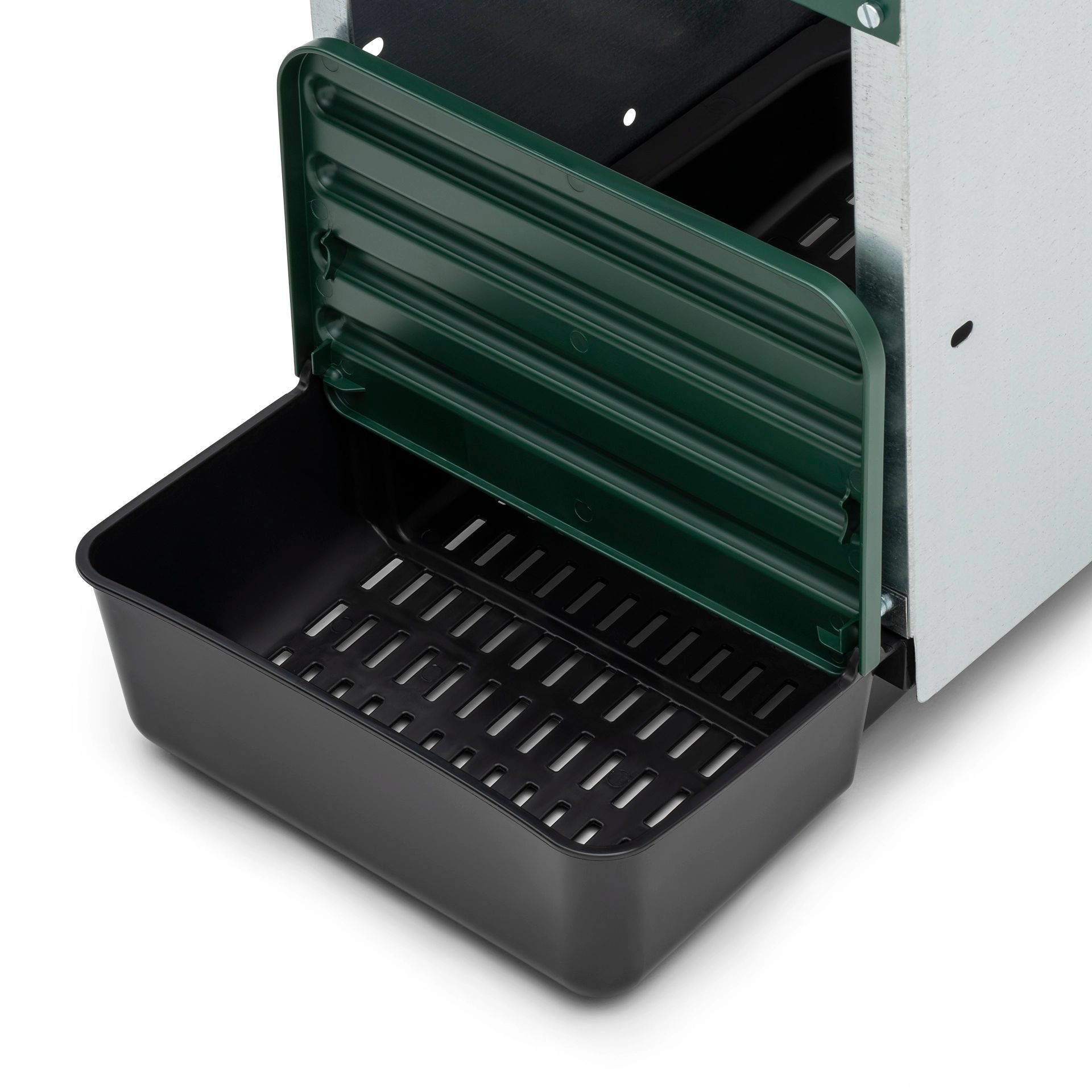 This solution is particularly beneficial for those who manage hobby poultry or operate small poultry farms. Its design for wall mounting not only saves space but also allows for straightforward installation. Made from galvanized metal and a plastic floor, it complies with the Textile Labeling Regulation, ensuring both long-lasting use and easy maintenance.