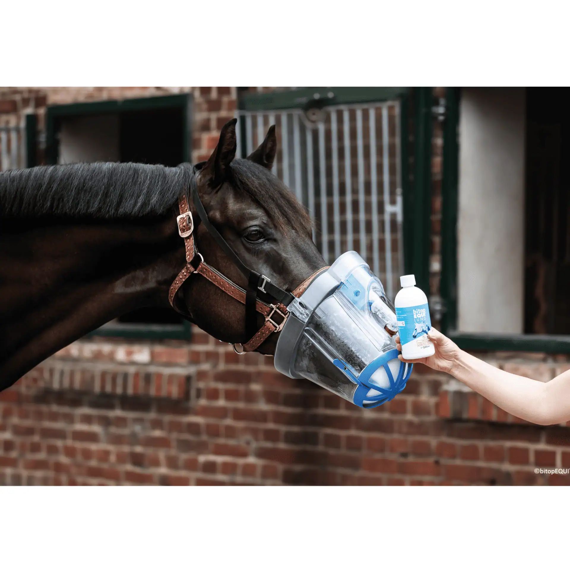 bitopEQUI® LUNG Complete is applied as an aerosol using a nebulizer for horses. The solution is ready to use and can be nebulized without further dilution. The isotonic ready-to-use solution is suitable for daily and long-term application. To maintain sterility, you should withdraw the solution using a cannula or an extra spike through the silicone-sealed opening of the cap. After opening the solution, you should use it within 30 days.