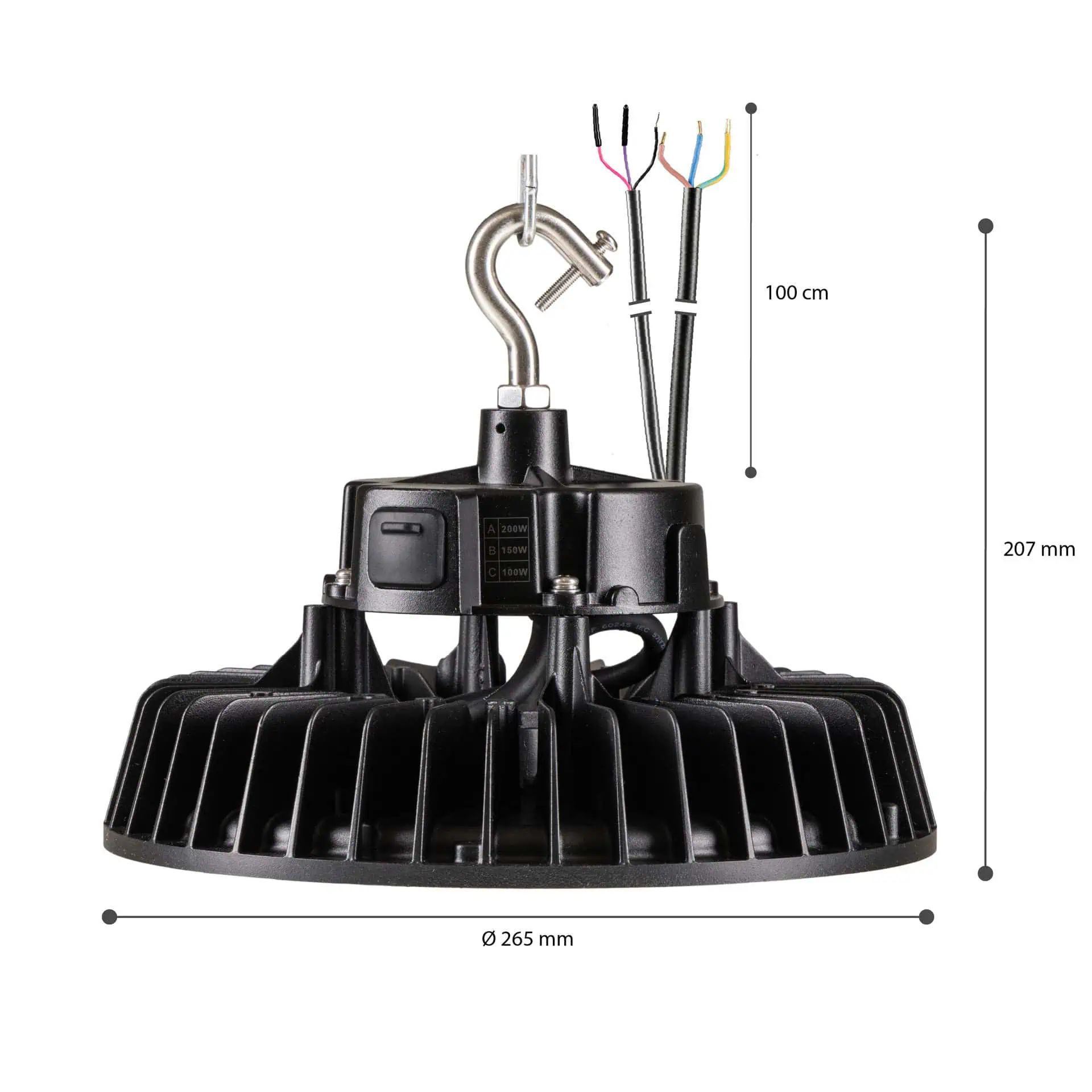 Discover the Göbel LED Hall Spotlight High Bay, your new partner for an exceptional lighting experience in various applications. This high bay spotlight is not only versatile and durable, but it also comes equipped with advanced features that meet your lighting needs. With customizable CCT options of 3000K, 4000K, and 5000K, you can choose the light color that suits your preferences. Whether in barns, warehouses, or industrial facilities, this spotlight offers the perfect light quality with a selectable power range of 200W, 150W, and 100W.