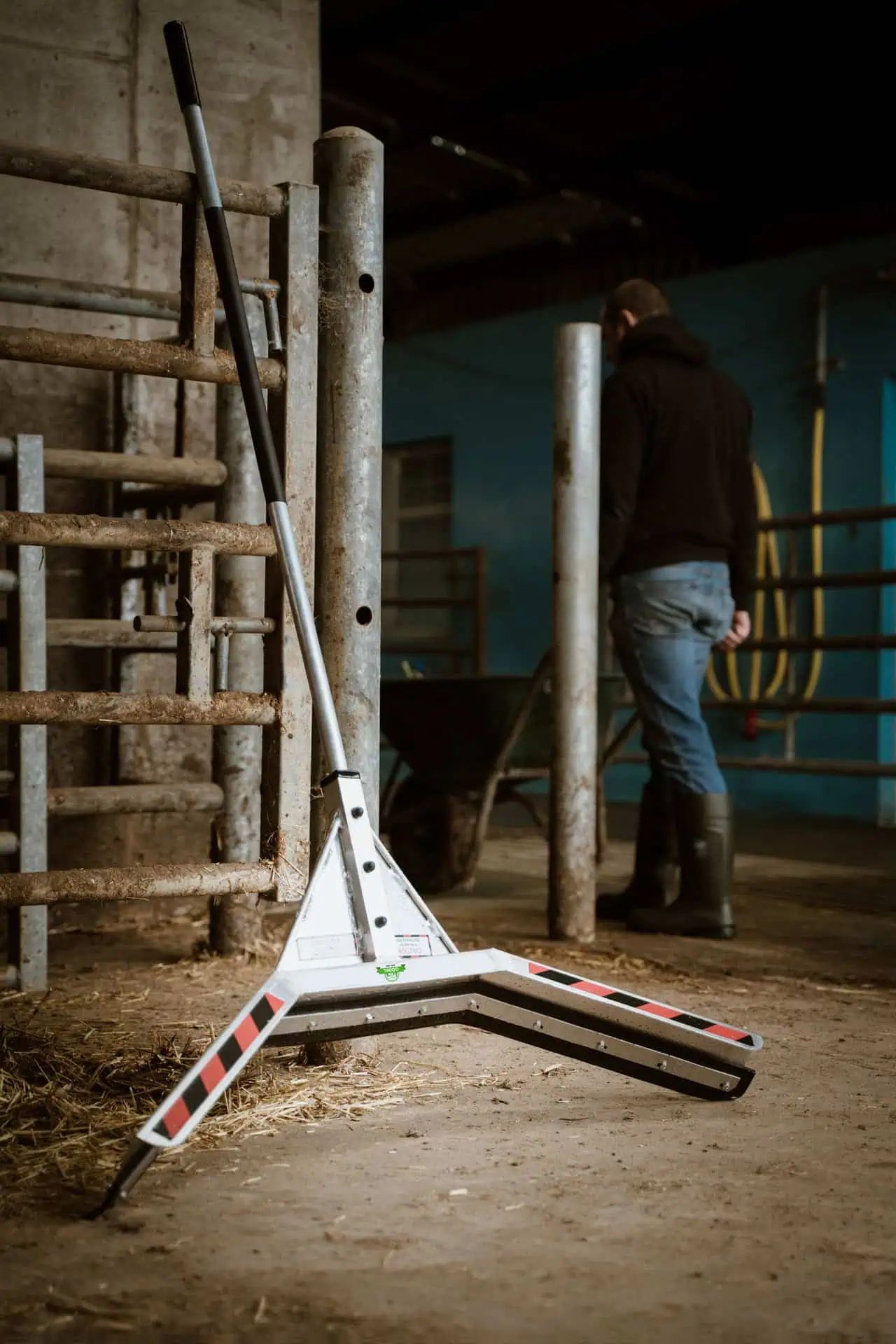 The Göbel Manure Scraper is suitable for those who want to clean their farm or stalls quickly and thoroughly without compromising hygiene and durability.