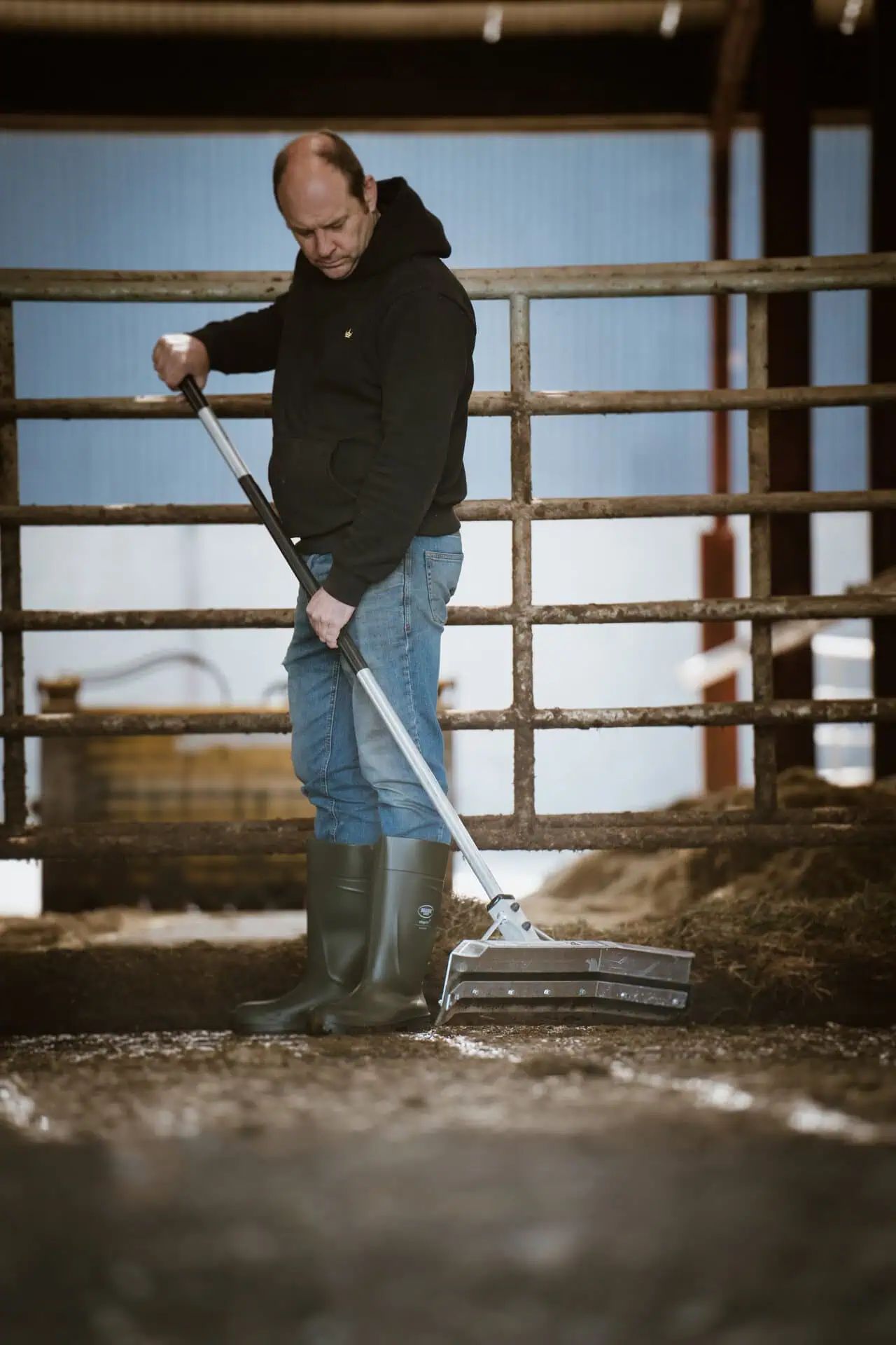 The manure scraper is made entirely of aluminum, which makes it not only robust but also particularly easy to maintain. You can easily clean it with a high-pressure cleaner, making it more hygienic than models with wooden handles. Thanks to its high-quality construction, you can rely on an extremely long lifespan. Whether for personal use or in agriculture, this cleaning scraper is ideal for anyone who values quality and efficiency.