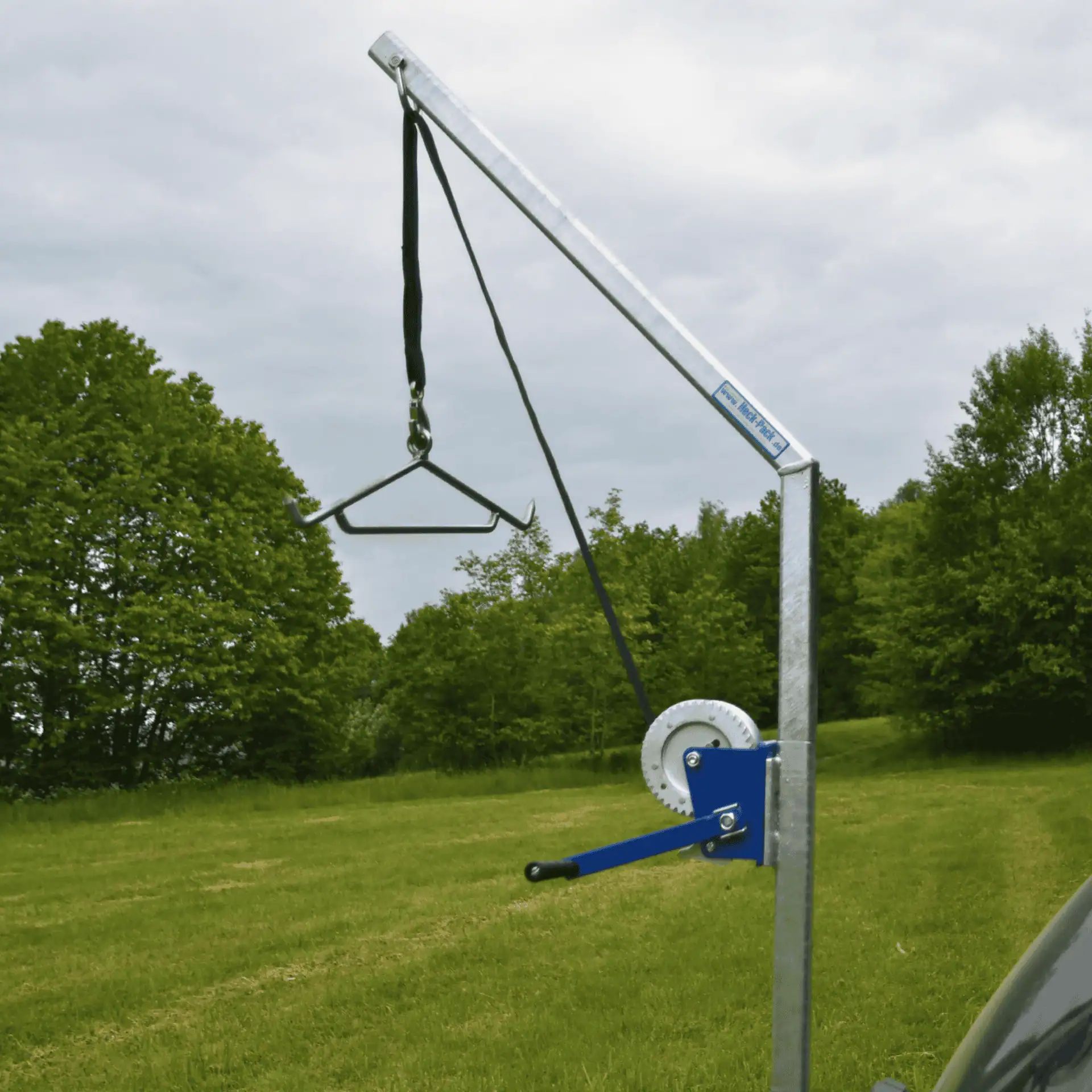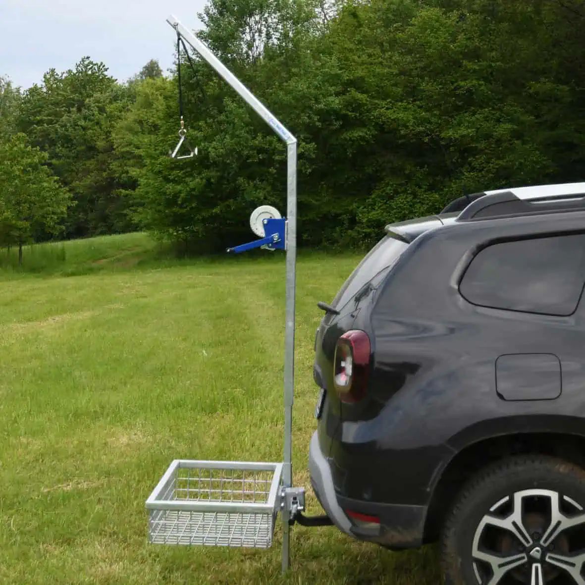 The Heck-Pack Wild Gallows “Diana” is the innovative solution for hunters who value hygienic and efficient game processing. This specific model is designed for mounting on a rear carrier and comes with a guiding adapter that facilitates installation on the rear carrier.