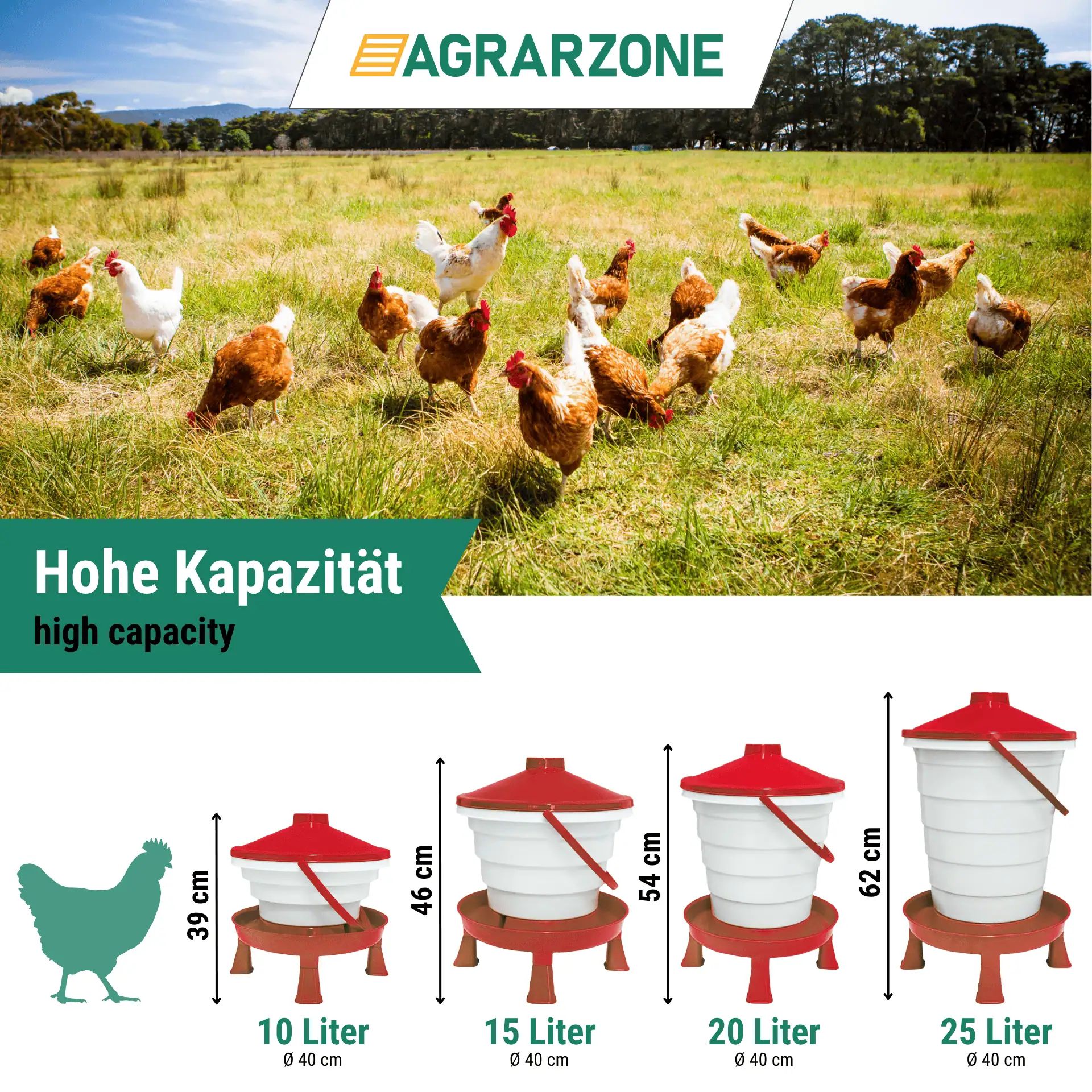 Do you want to provide your poultry with a hygienic and reliable water supply? With the Agrarzone Poultry Drinking Bucket with Feet, you make sure that your chickens, ducks, or quails always have access to fresh water. The automatic water supply ensures that the water level always remains optimal – so you have to refill less often and have more time to take care of your animals. The elevated feet raise the water to a comfortable drinking height and protect it from dirt and bedding.