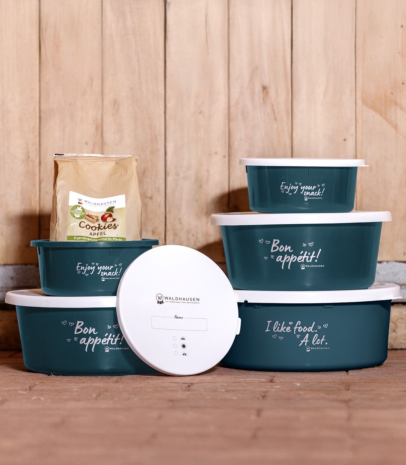 Waldhausen "Bon Appétit!" Feeding Bowl with Lid, Petrol Blue, 5 l - The perfect protection for your horse's feed!