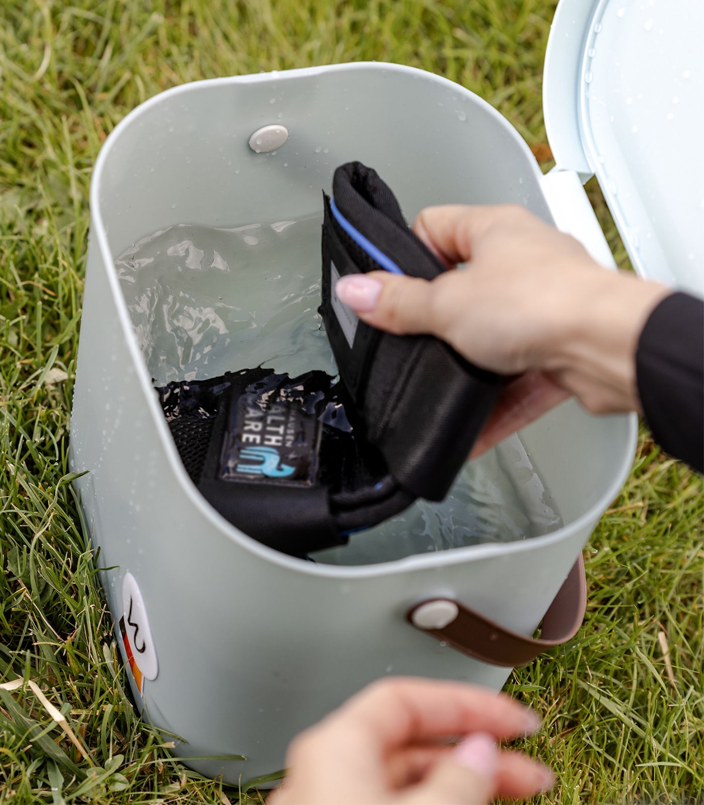 Immerse the tendon boots in cold water until completely soaked. Then wring them out well and place them around the horse's leg. Ensure the horse stands still and is not unattended during use.
