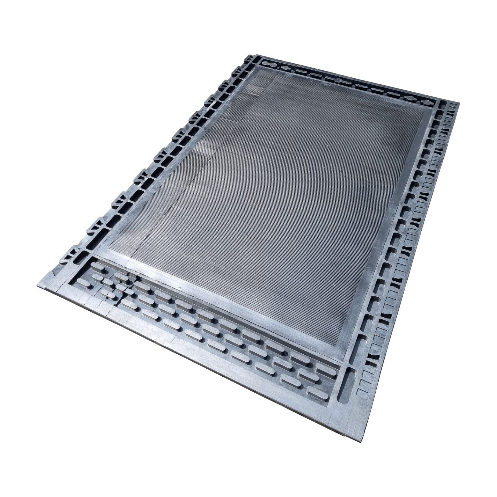 Den halkfria, präglade ytan ger säkert grepp även vid fuktighet, medan den flexibla strukturen minskar risken för skador och stöder hästens naturliga rörelser när den lägger sig och reser sig. Dessutom är det slutna gummikåpan vattentät och lätt att rengöra; den integrerade bakåtlutningen möjliggör effektiv vätskedränering för en ren och torr liggplatta. Med hög tryckstyrka är mattan extremt slitstark och kräver minimalt underhåll, vilket sparar pengar på lång sikt.