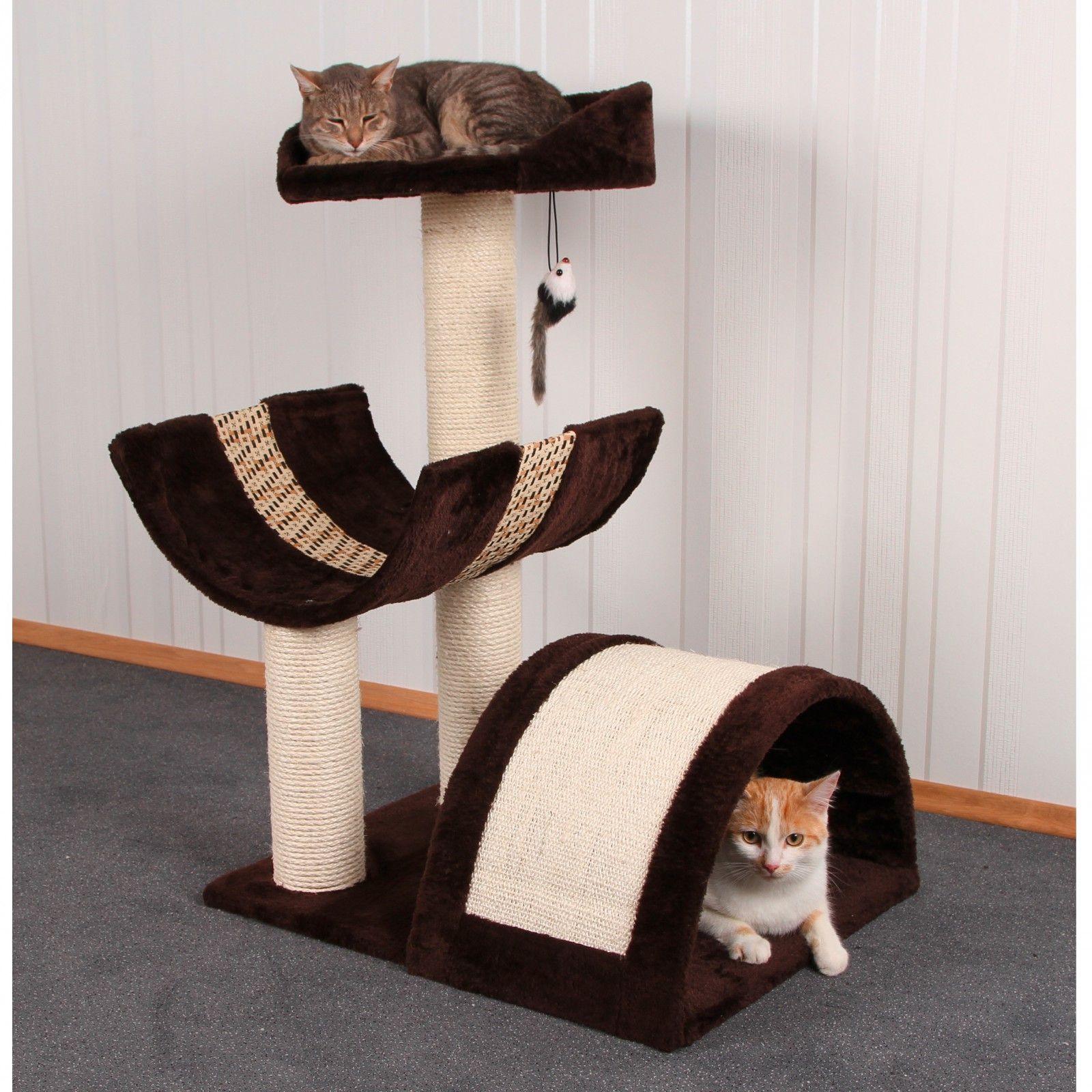 Detta skrapstolpe Med en solsäng, en svängd skrapbräda och en solstol passar den perfekt in i varje helg. Leksaksmusen bjuder in till spännande speläventyr.