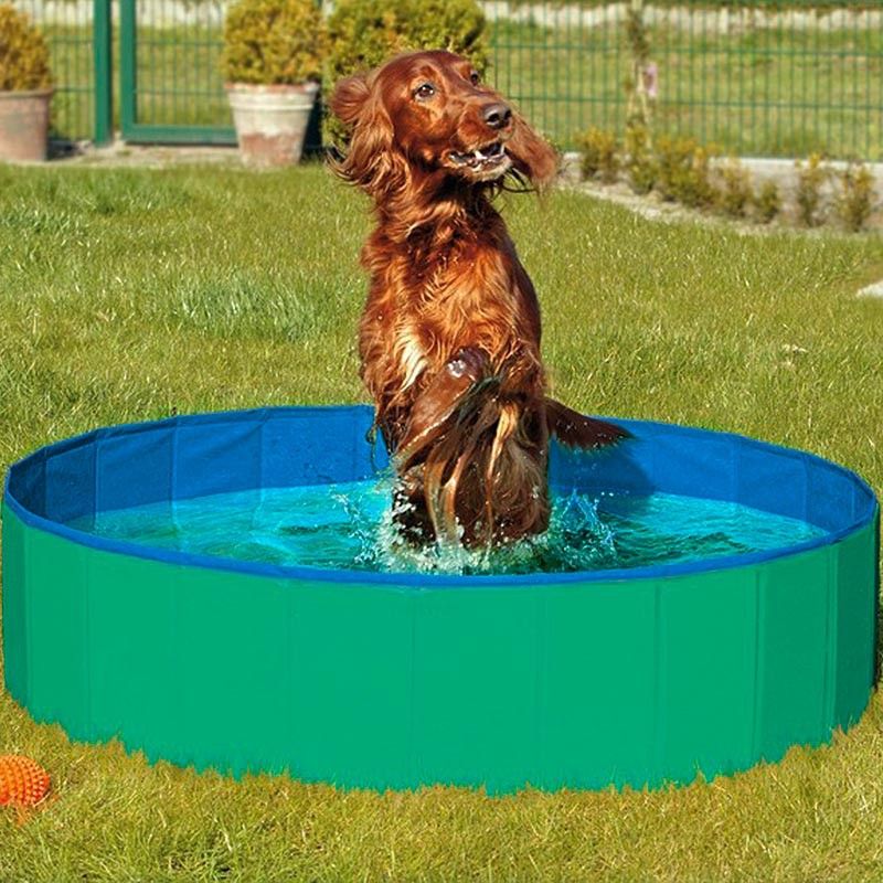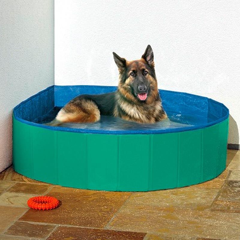 Riktigt cool... doggy poolen! KARLIE-paddlingsbassängen DOGGY POOL kan ställas upp och demonteras på några sekunder. Ingen luftpump krävs - ingen hisnande uppblåsning. Poolinnergolv med halkskydd.