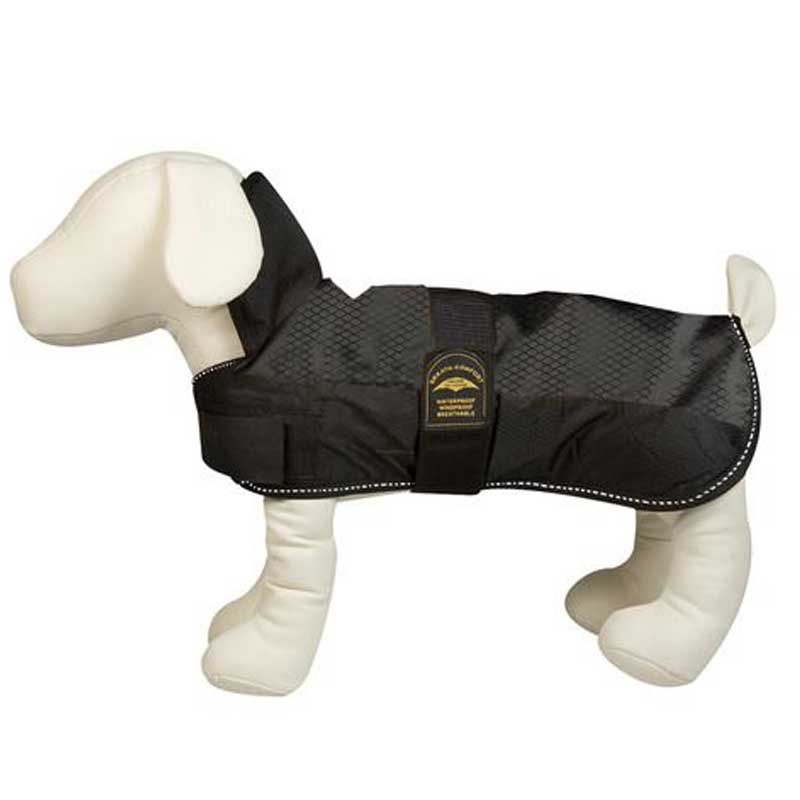 Nu är långa promenader med hunden äntligen möjliga på vintern, tack vare EISBÄR hundkappan som skyddar mot kyla, vind och fukt och har en speciell teflonbeläggning. Denna kappa ger ett perfekt skydd mot kyla och det ofta blöta och kalla vädret. Det andningsbara tyget är också smutsavvisande, håller vatten ute och är ogenomträngligt för vind. Eisbärs hundkappa erbjuder optimal bärkomfort, eftersom hundkappan är steglöst justerbar tack vare kardborreband på bröstet och från storlek 50 i magområdet. Passformen optimeras av de extra benöglorna, som förhindrar att den glider. Det finns ett urtag för hundkopplet på halsbandet.