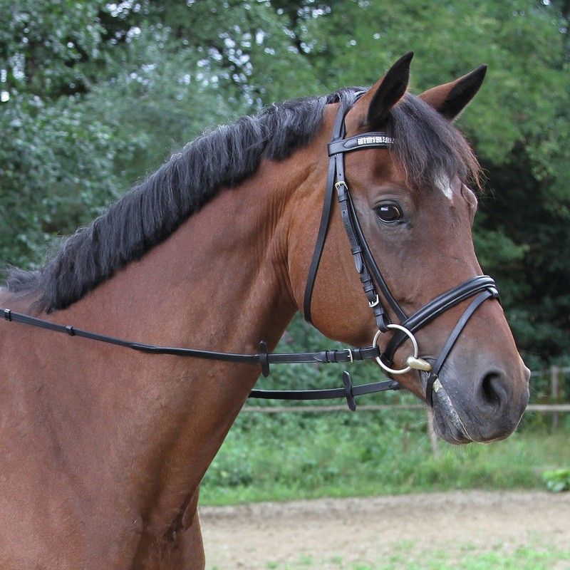 Du får en robust tygel med läderändar och en martingalstoppare.