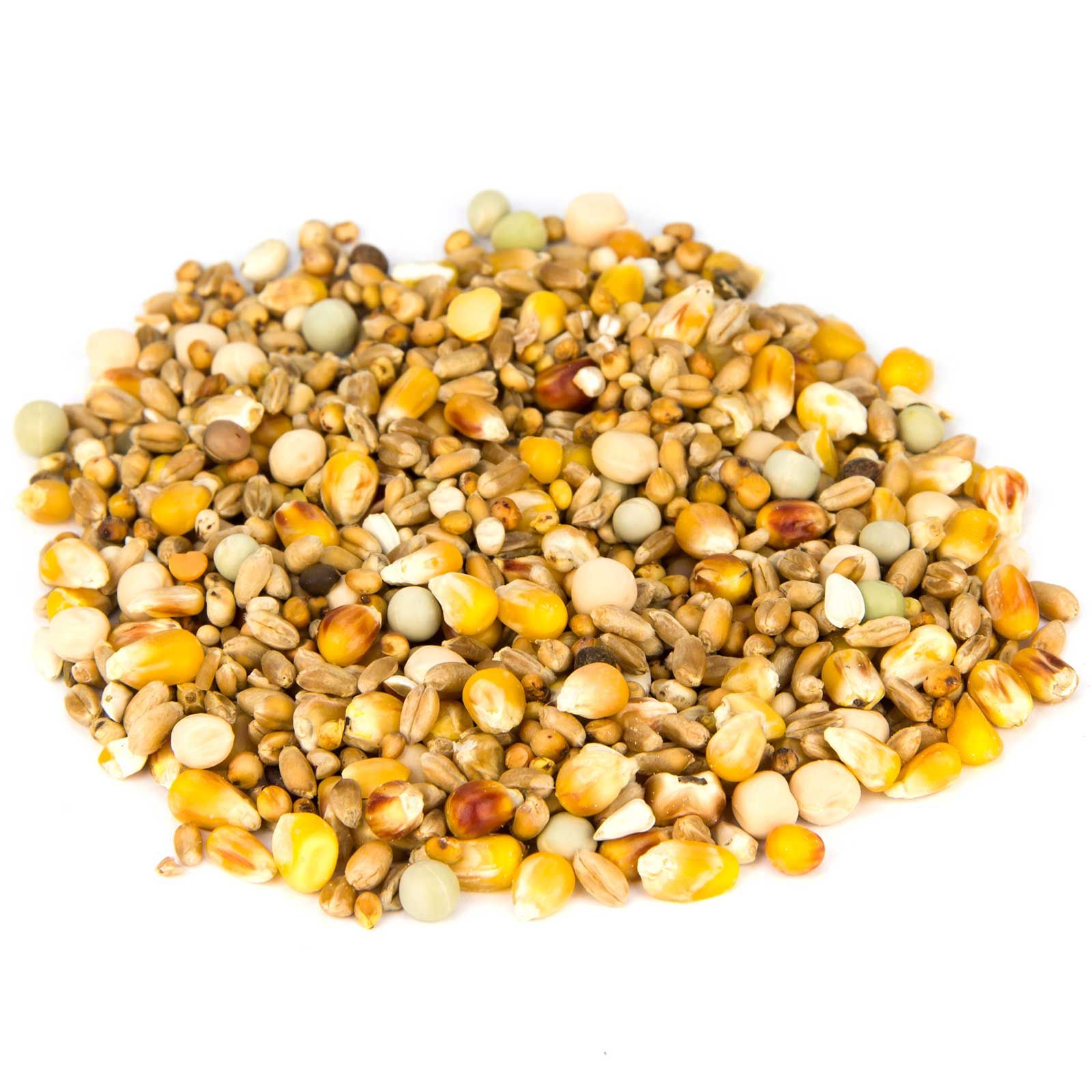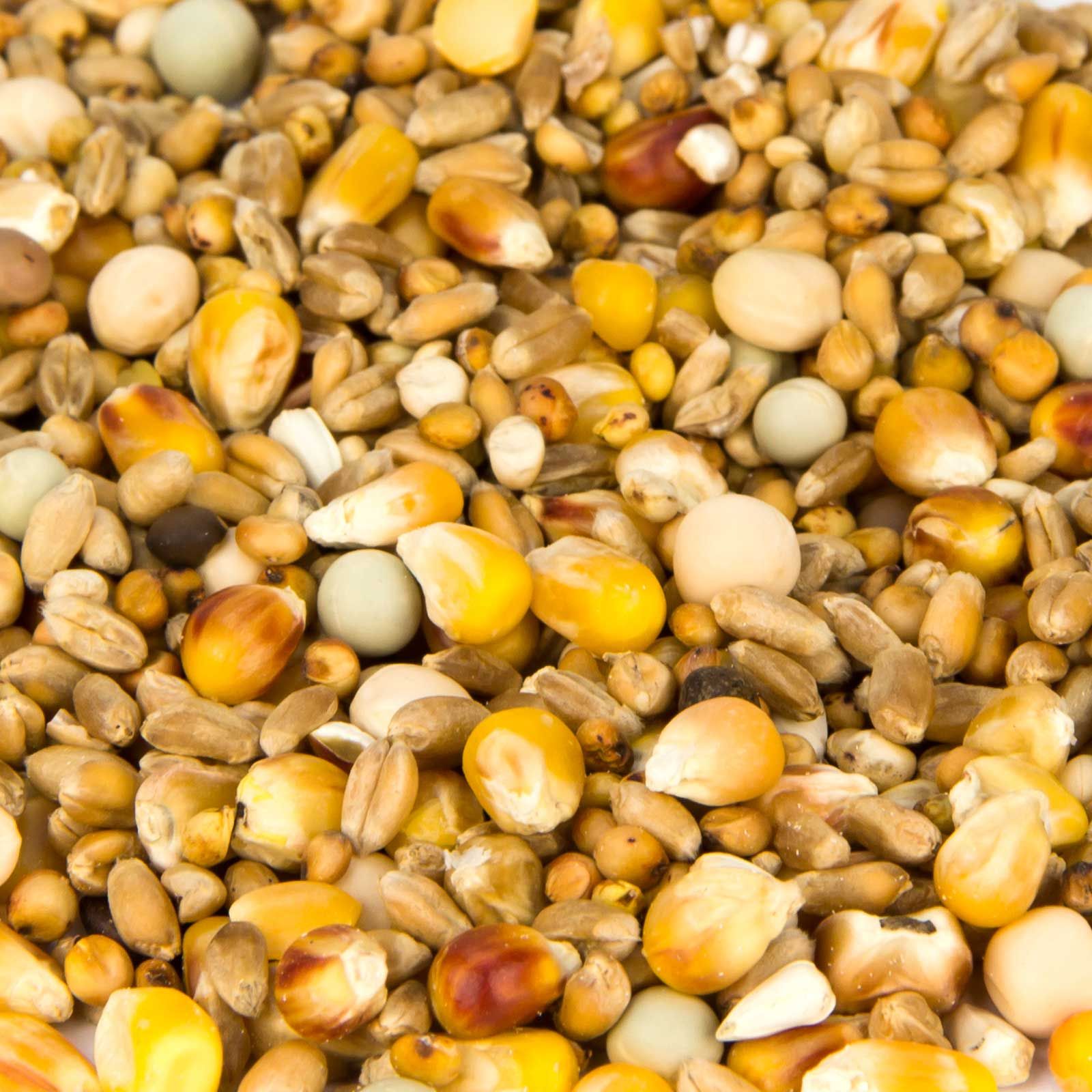 39 % medelhög majs, 31 % vete, 5 % små ärtor, 9 % stora ärtor, 10 % milokorn, 3 % dari, 1 % hjärtfrö, 1 % vicker, 1 % gul hirs.