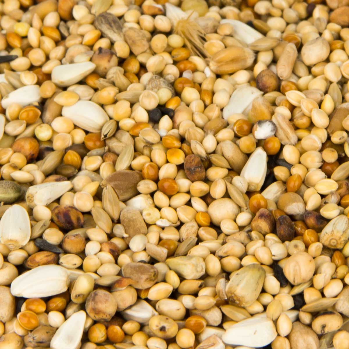 35,5 % gul hirs, 20,0 % vete, 13,0 % dari, 10,0 % milokorn, 9,7 % röd hirs, 7,0 % kardifrö, 2,9 % glänsande frö, 0,7 % hampa europeisk, 0,5 % senegalhirs, 0,2 % negrofrö, 0,2 % svart raps, 0,2 % japansk hirs, 0,1 % perillafrö brunt