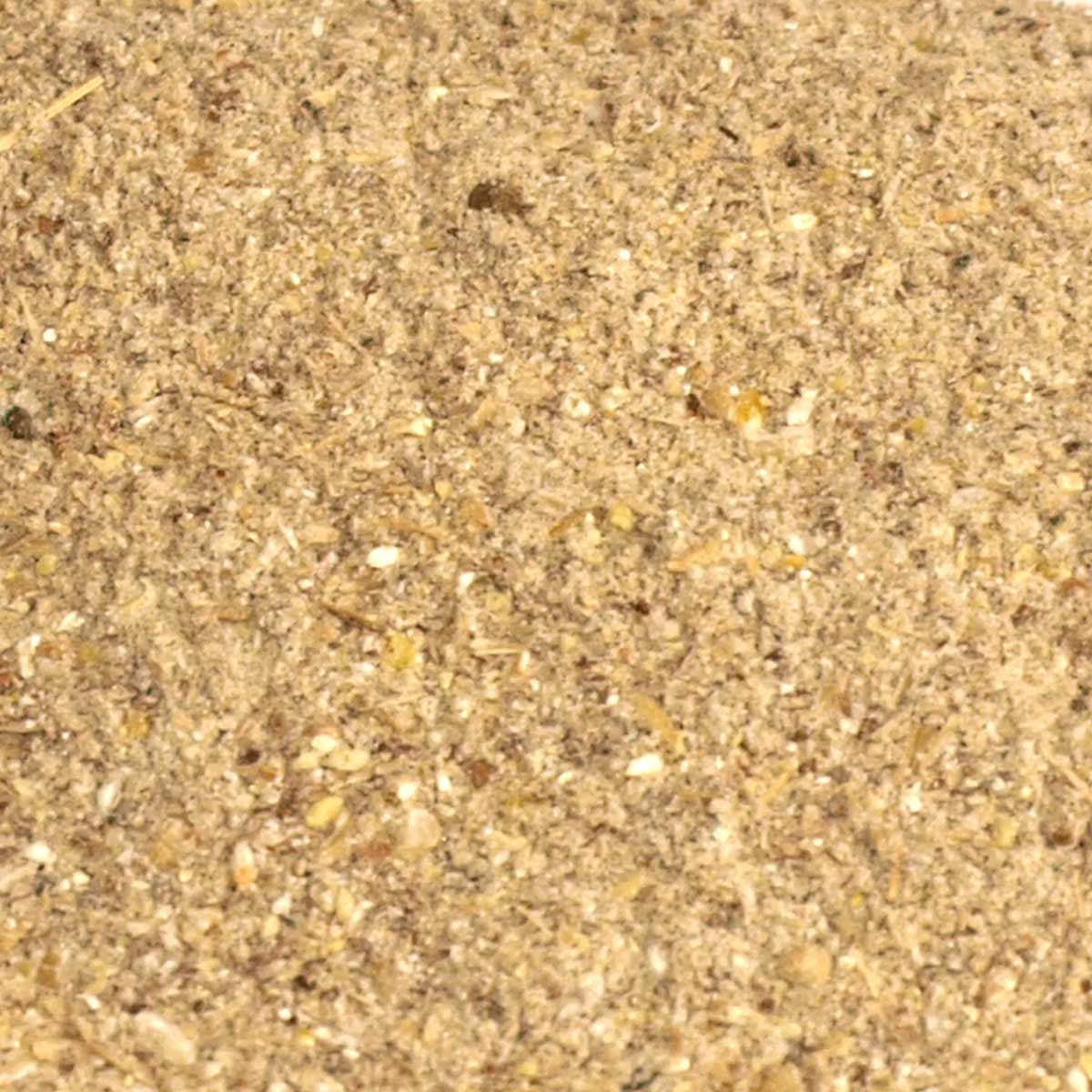 lindextraktionsmjöl, sojabönsextraktionsmjöl med såpstock (ånguppvärmd), fint krossat korn, fint krossat vete, fint krossad majs, kalciumkarbonat,