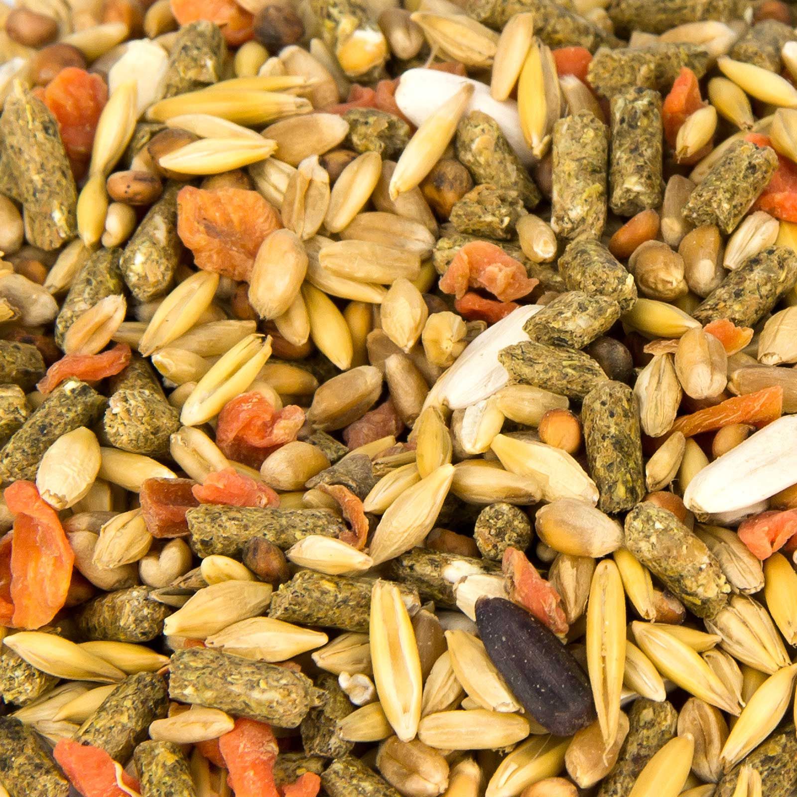 : vete, havre, maltkorn, havregryn, milokorn, morotstärningar, vetekli grovt, grönt mjöl, solrosfrön vita, majskoncentrat, torkad massa, rapsmjöl med pinne, pumpafrönkaka, melass, lignocellulosa, kalciumkarbonat, monokalciumfosfat, natriumklorid, natriumbikarbonat, magnesiumoxidFörvaring: