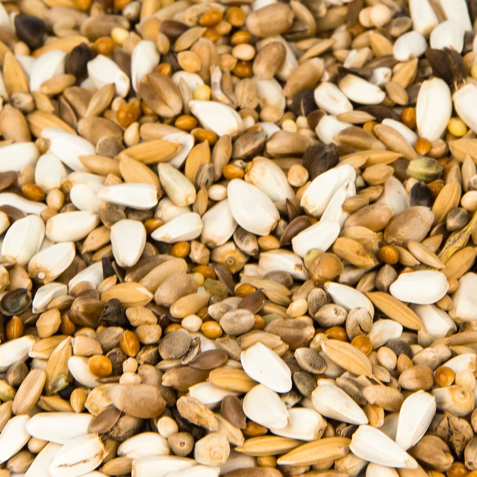 10 % gul hirs, 8 % glansfrö, 8 % röd hirs, 5 % havregryn, 30 % hjärtfrö, 5 % linfrö, 10 % hampa, 4 % bovete, 10 % vete, 10 % paddyris.