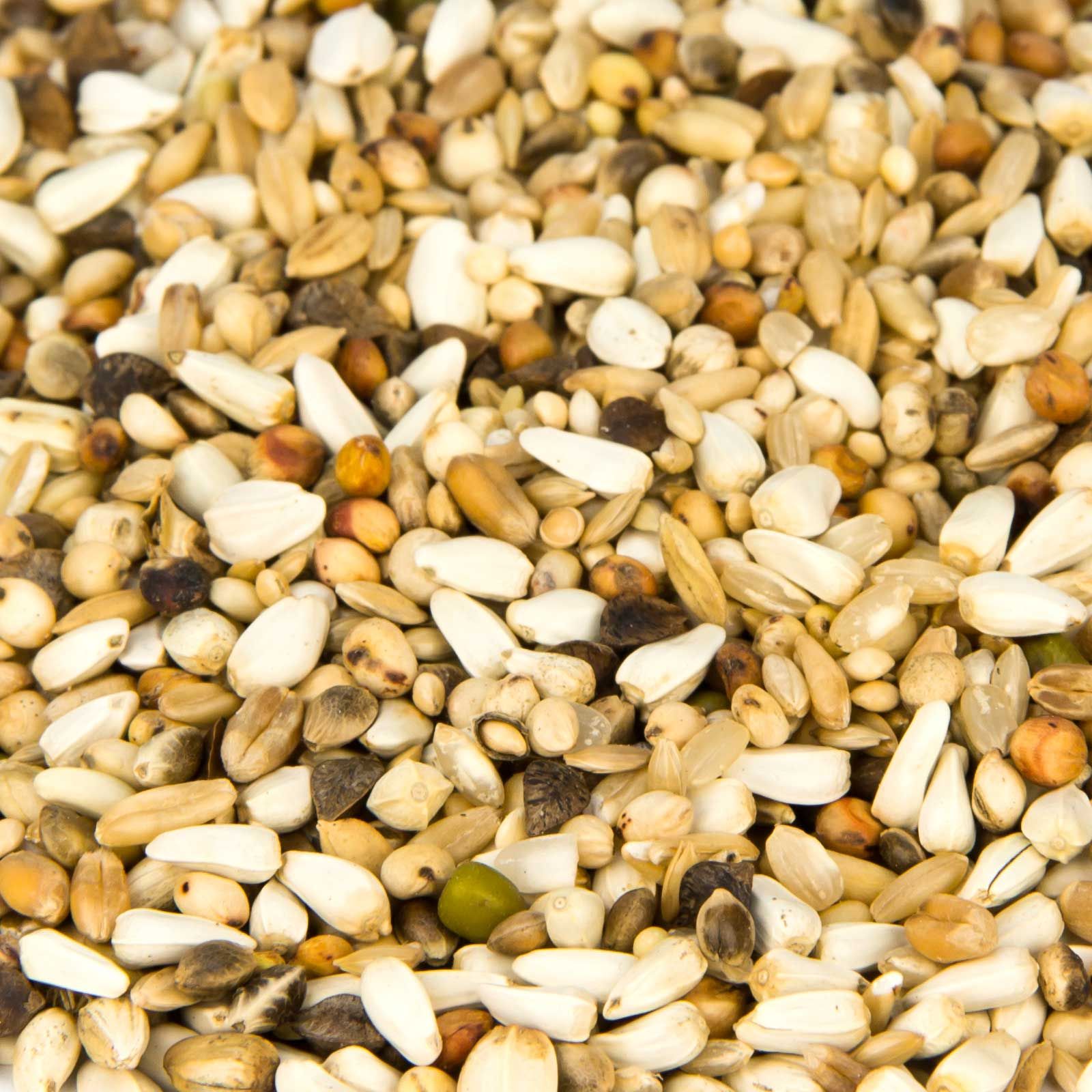 30,00% Cardi Seed, 17,00% Dari, 10,00% Rice, 8,00% Rolled Oats, 5,00% Buckwheat, 5,00% European Hemp, 5,00% Wheat, 5,00% White Millet, 5,00% Glossy Seed, 5,00% Milocorn, 3,00% Paddy Rice, 2,00% Mung Beans