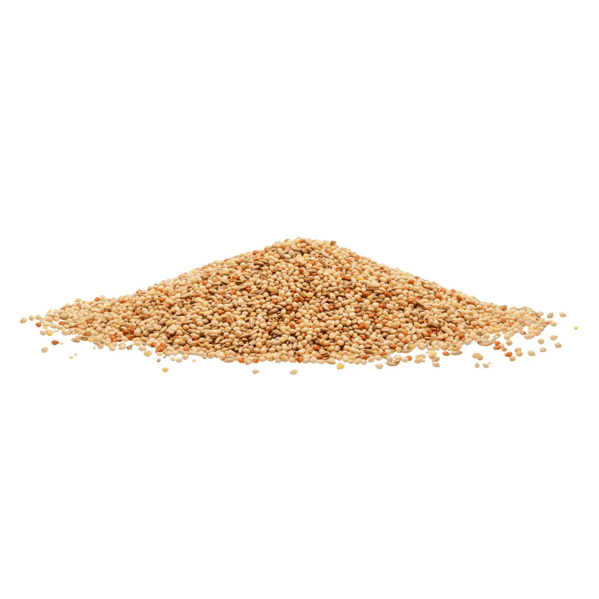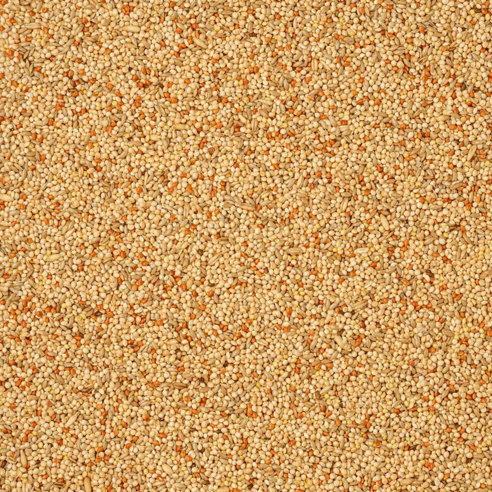 70 % gul hirs, 15 % glansfrö, 10 % röd hirs, 5 % havregryn.